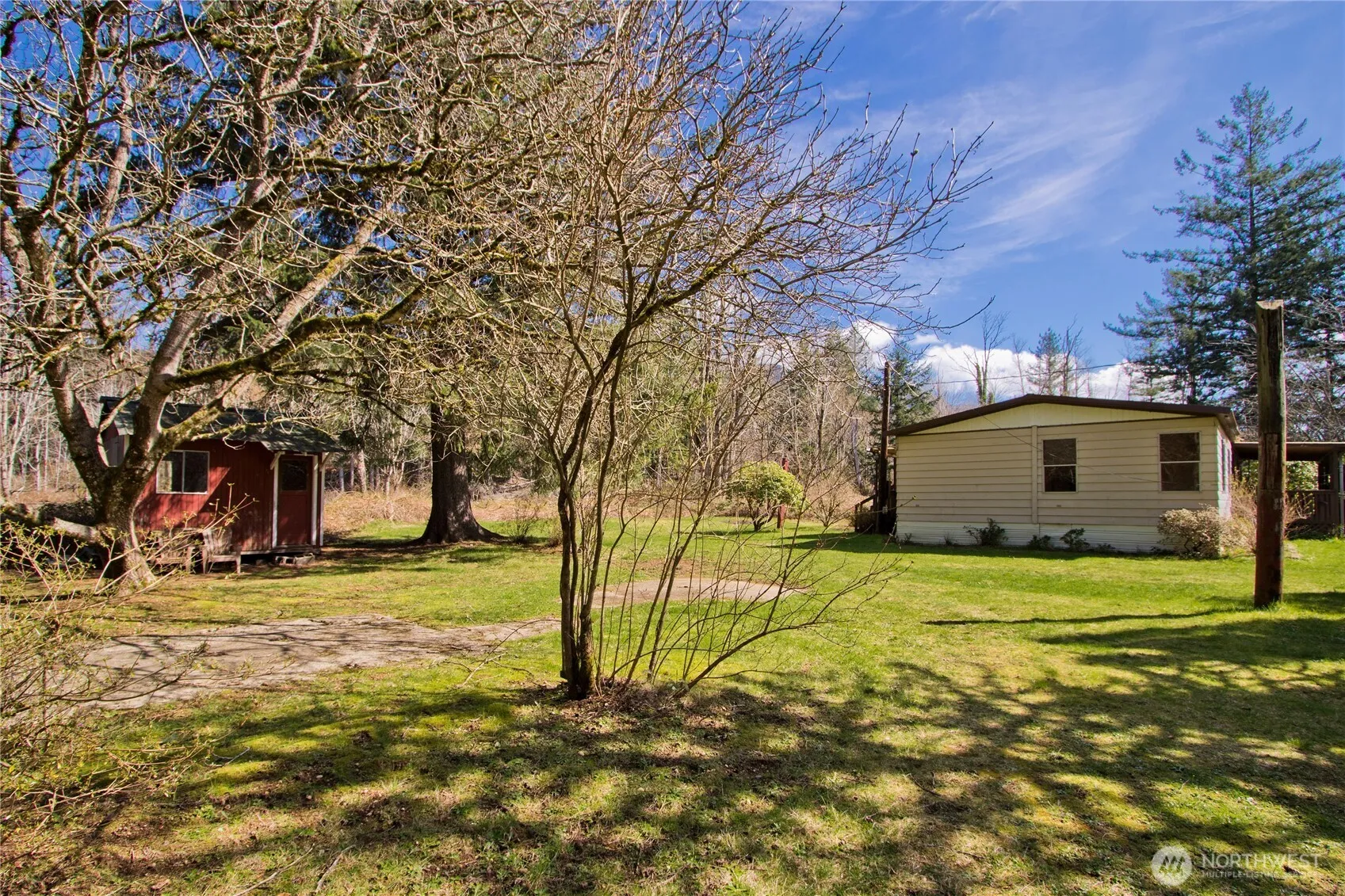 Cash only! Charming 3-bedroom, 2-bath home set on a park-like 2.71 acres with mature trees, rhododendrons, and more. Features a spacious living and dining area, an updated kitchen that opens to a cozy family room with a gas free-standing fireplace. Accessed via an easement off Cumberland Kanaskat Rd from the railroad. Includes private septic and community spring-fed well. Shown by appointment only!