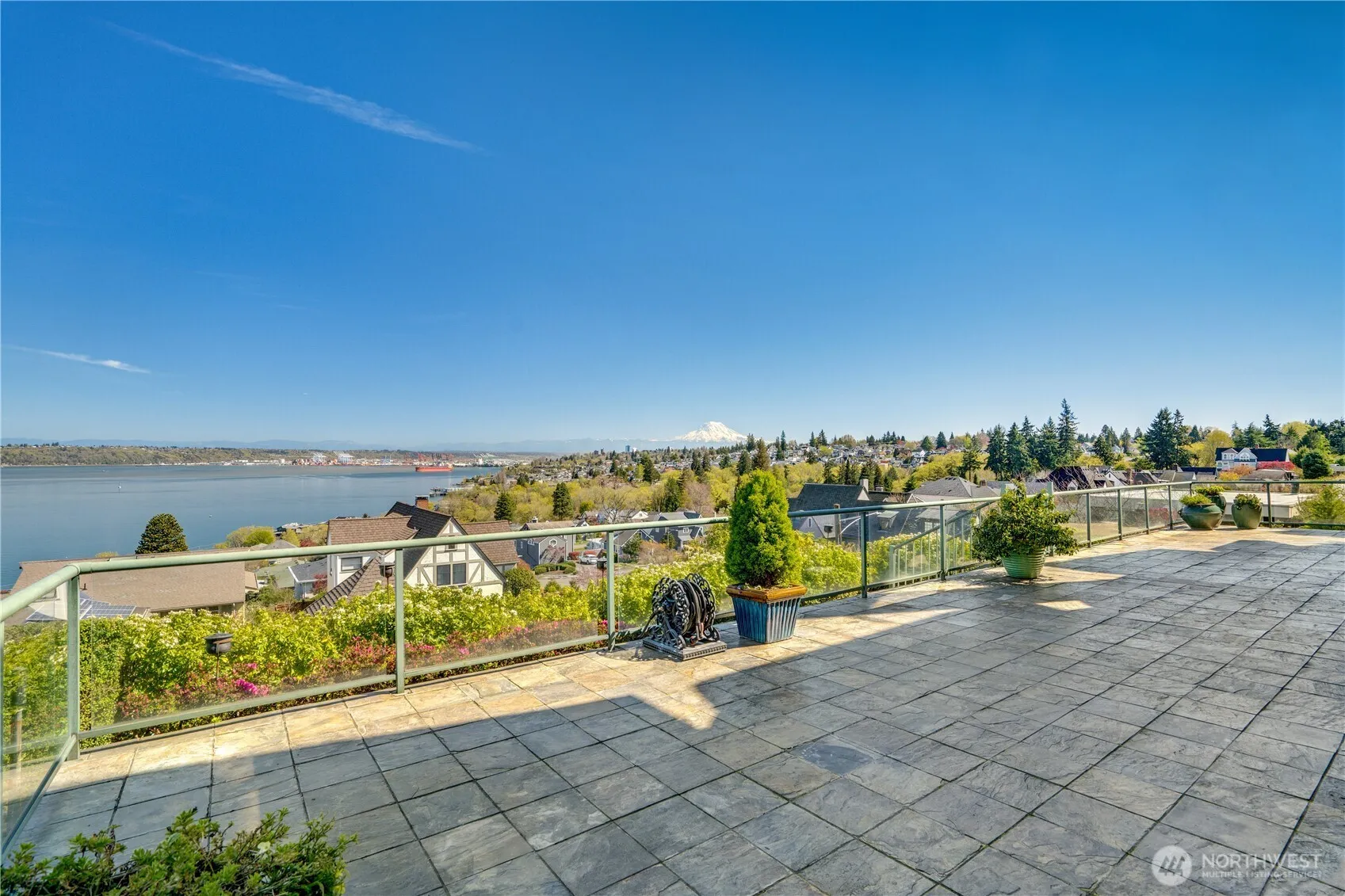 Some homes are built to endure. Perched on one of North Tacoma’s most coveted streets, this landmark 1925 all-brick estate commands arguably the finest panoramic view in Tacoma — Commencement Bay, Mt. Rainier, and the Cascade Mountain Range, framed from your living room, dining room, and private upper terrace. Grand arched windows flood the interior with light and water views at every turn. Hardwood floors, original millwork, soaring ceilings, and two gas fireplaces speak to craftsmanship that simply cannot be replicated. Five bedrooms, 3.5 baths, and 5,723 square feet of grand entertaining spaces flow seamlessly to stone terraces, exceptional gardens, and a private sport court below. From the first light rising over the Cascades to the last glow fading over Commencement Bay — every moment at this address is defined by the view. A new roof, completed pre-inspection repairs, and decades of meticulous maintenance mean nothing left to discover — only the opportunity to put your own signature on a home built to last another hundred years. Minutes to Proctor District, Annie Wright Schools — ranked #1 private K–12 in Washington State — and the historic Tacoma Lawn Tennis Club. For the legacy buyer who understands that views, brick, and character like this come to market perhaps once in a decade — this is that home.