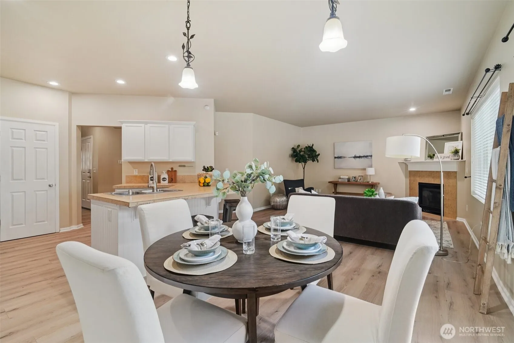 Back on market, no fault of the seller. Spacious 5-bed, 2.75-bath home in sought-after Fredrickson Estates! Features include fresh exterior paint, new LVP flooring on the main level, A/C, and a rare main-floor bedroom with ¾ bath—ideal for guests or multi-generational living. Open kitchen with gas stove flows into cozy living area with gas fireplace. Upstairs primary suite offers dual vanities, soaking tub, walk-in shower, and custom walk-in closet. Additional upstairs bedrooms plus bonus room and convenient utility room. Enjoy a fully fenced backyard with dog run and peaceful greenbelt views. 3-car garage with built-in storage. Prime location near community park, shopping, and multiple grocery stores just minutes away.