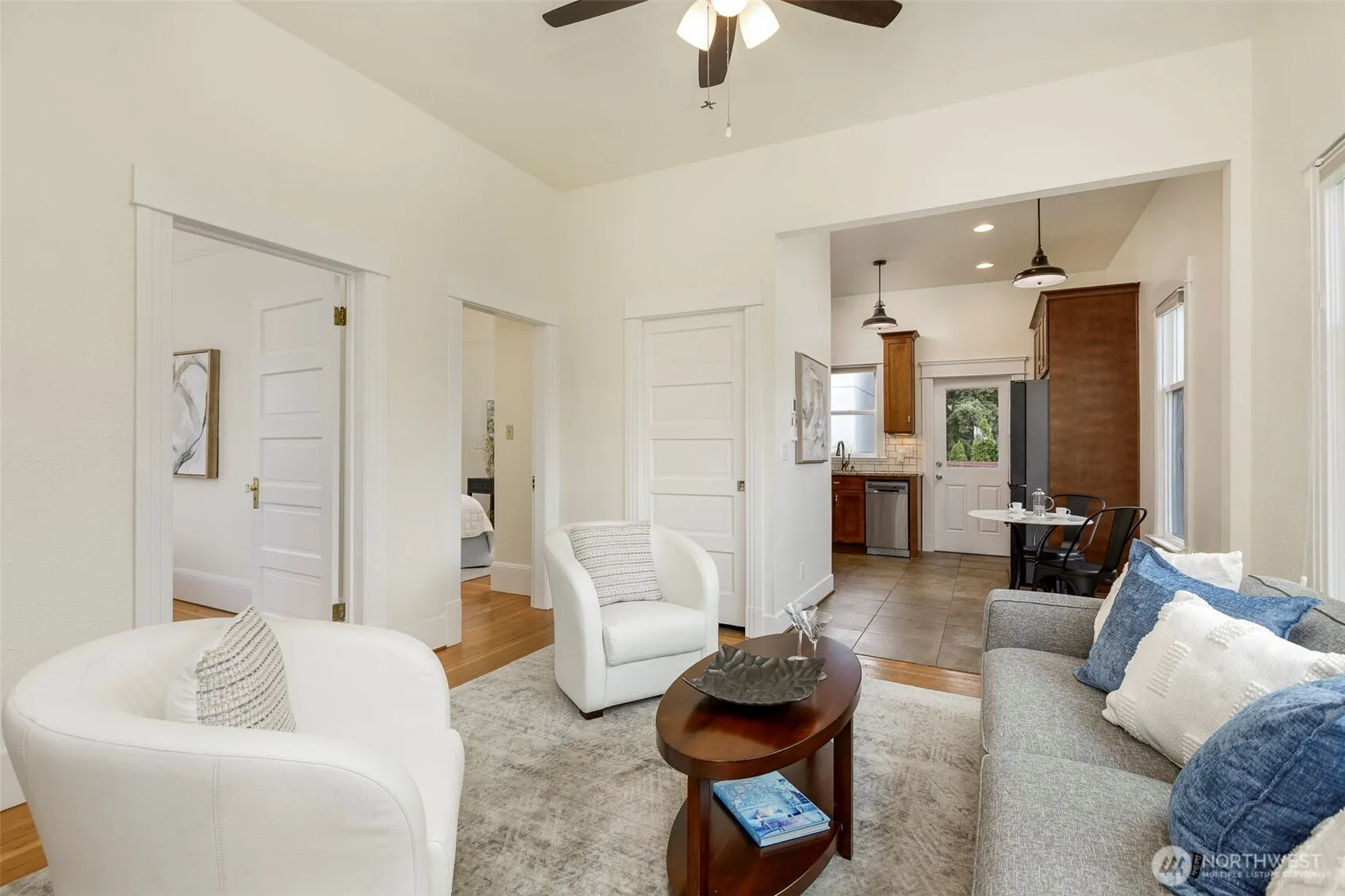 Step into this thoughtfully updated 1904 Craftsman in Seattle’s highly sought-after Ballard neighborhood, where timeless charm meets modern comfort and thoughtful updates. The main level welcomes you with high ceilings and a light-filled, open layout featuring warm fir floors throughout, creating an inviting space to relax and entertain. Enjoy a cozy living room, dining area, updated kitchen and bath, plus a main-floor primary suite with en suite bathroom and a second bedroom for guests or flexible use. Upstairs offers a versatile third bedroom or perfect home office. The unfinished basement provides a laundry area, built-in workbenches, and abundant storage, with excellent potential to expand into extra living space, a personal studio, or recreational retreat. Step outside to a deck overlooking the level, generous backyard, complete with a patio, shed, and driveway offering off-street parking for multiple vehicles, including space for recreational toys. Located near the heart of Ballard, one of Seattle’s most vibrant neighborhoods, you’re just steps from shops, restaurants, breweries, and the beloved Ballard Farmers Market. Outdoor enthusiasts will love the Burke-Gilman Trail for biking, Shilshole Bay, Golden Gardens Beach, and the Ballard Locks. With easy access to Green Lake, Phinney Ridge, and major commuter routes, this home perfectly blends urban convenience with an active, outdoor lifestyle. Pre-inspected and move-in ready.
