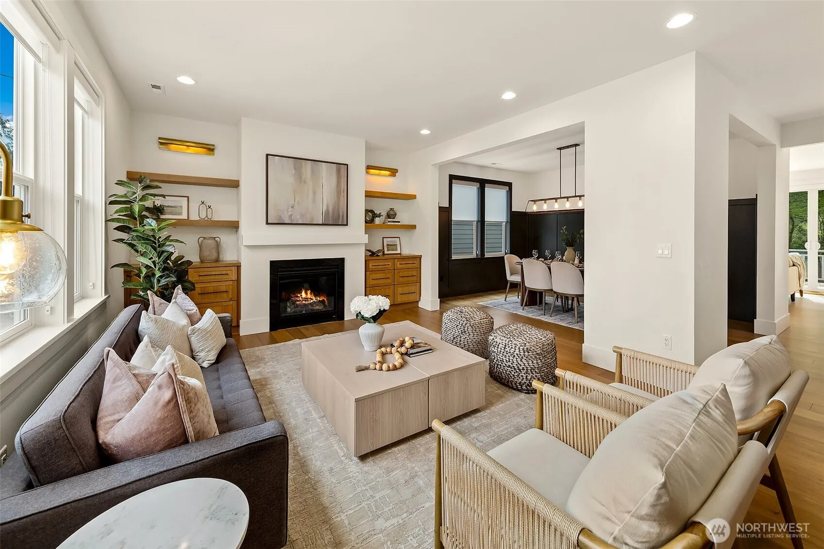 Welcome to 1551 NE 91st St where luxury meets livability in Seattle’s Maple Leaf neighborhood. This stunning home makes an unforgettable first impression with exceptional curb appeal and continues to impress with designer finishes throughout. Step inside to an open, light-filled floorplan that feels both expansive and inviting. Premium wide-plank hardwood flooring flows seamlessly through the main level, complemented by custom built-ins, a cozy gas fireplace, and central A/C for year-round comfort. The chef’s kitchen is a true showstopper, featuring commercial-grade appliances, a striking quartz waterfall island, and ample space for entertaining. Just off the kitchen, a deck leads to a fully fenced, unusually large, level backyard, perfect for gatherings, play, or quiet relaxation. This home offers an incredible amount of space with a thoughtfully designed layout. Upstairs, you’ll find four bedrooms, including a stylish primary suite that truly stands out. The spa-inspired ensuite bath boasts a soaking tub, heated floors, and custom closet built-ins. A full bath and convenient upstairs laundry/utility room complete this level. The lower level adds even more versatility with a guest suite, ¾ bath, and a spacious rec room with wet bar, ideal for entertaining. A finished storage room in the garage adds practical convenience. With its amazing floorplan, high-end finishes, and rare combination of space and style, this home is a standout opportunity in Seattle living.
