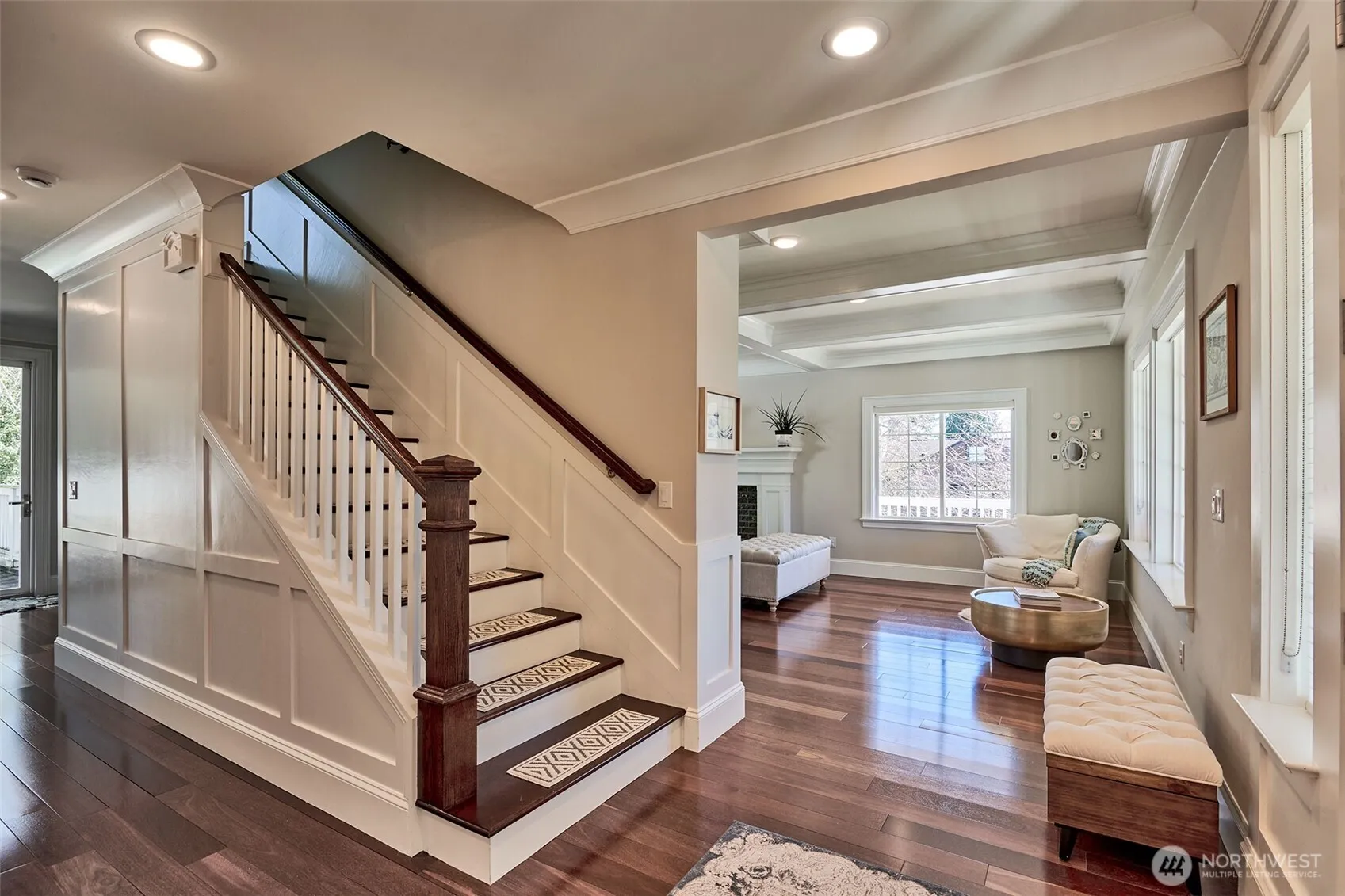 A timeless classic, this 1924 Georgian Colonial home has been meticulously rebuilt from the studs out in 2018. With commanding presence towering 40 ft above the street, overlooking Mt Baker Park, this home features multiple, thoughtfully designed living areas. As you enter, you are greeted by a welcoming foyer, a guest closet & powder room. There is a home office equipped with organized storage, perfect for remote work or study. To the right, you are led to the formal living & dining areas, ideal for gatherings & entertaining. The spacious kitchen is a chef’s dream, complete with an expansive Quartz island, a Thor range with six-burner gas cooking & griddle, double ovens, KitchenAid refrigerator, & 2 dishwashers. Off the kitchen, a generous 780-sqft deck invites you to enjoy outdoor living on Seattle’s warmer days. Upstairs, the second level offers a spacious primary bedroom featuring a fireplace. An ensuite includes a soaking tub, large shower plumbed & ready for steam, & a heated tile floor for added comfort. 2 additional bedrooms are connected by a full bath, providing ample space for guests. A laundry room is conveniently located on this floor. The third floor includes a large bedroom and a full bath, a bonus room and extra storage space. The lower level features an additional room perfect for a media room, a fireplace, 5th bedroom, currently used as a home office, full bath, space for a gym, second laundry room leading to the 3+ garage. So much to explore in Mt Baker