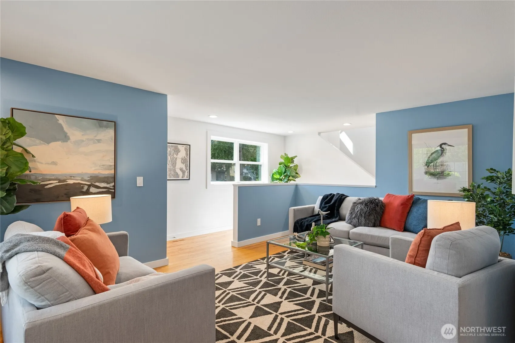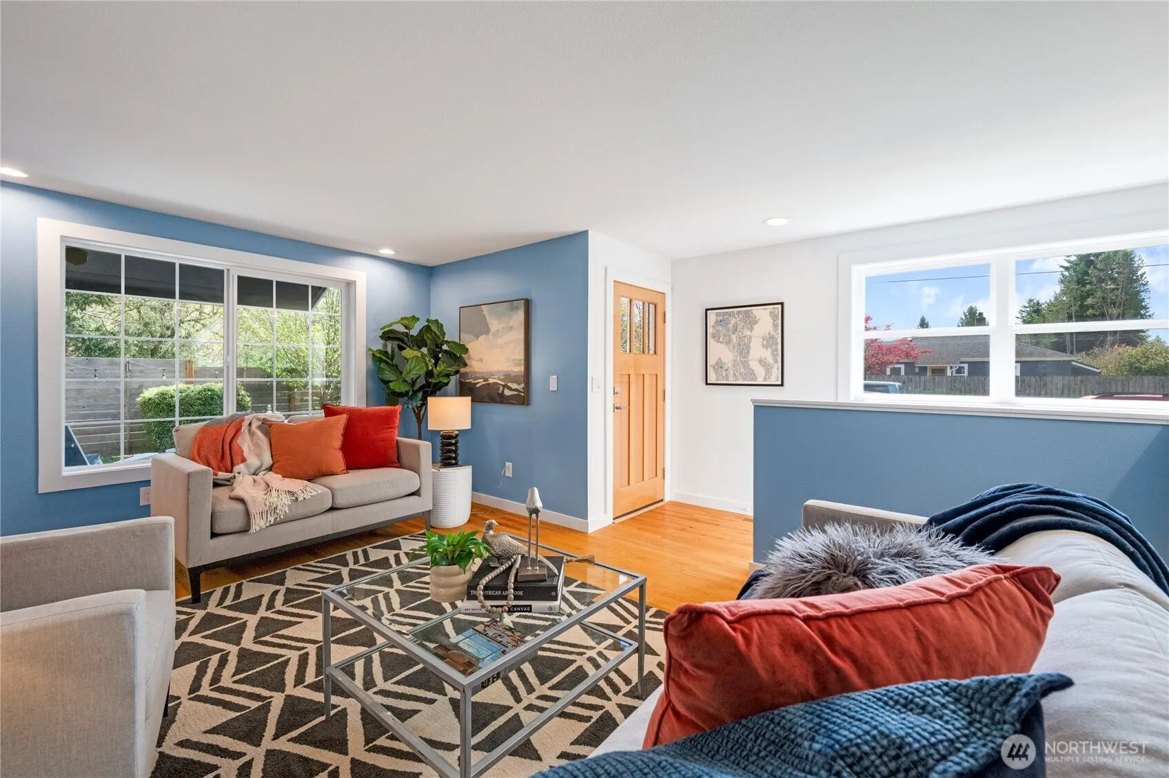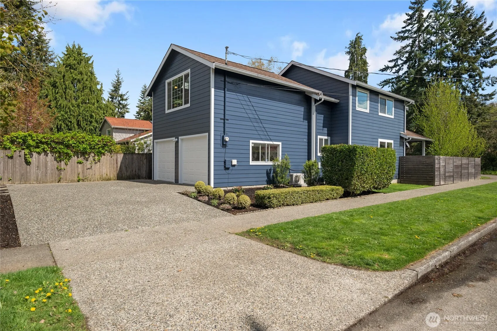 Ideally located on a sunny and private corner lot in the Wedgewood neighborhood, this turnkey, contemporary craftsman styled home just received a thoughtful and comprehensive renovation. The main floor of this comfortable home offers a large updated kitchen with ample work and storage spaces, dining room, living area, powder room, coat closet and laundry room. The second level offers two bedrooms plus a large primary bedroom suite with all surfaces updated in both bathrooms + new tile and paint. The second floor also offers a large den with vaulted ceilings, sky lights and a wood burning fire place. Additional features include a covered deck off of the front of the house, fenced level yard, attached two car garage + off street parking for two more vehicles. . Oak hardwoods, A/C, insulated windows, inspected systems, vetted and ready for the next owners. Walking distance to amenities and shopping on 35th Ave NE and just blocks to View Ridge Playfield.