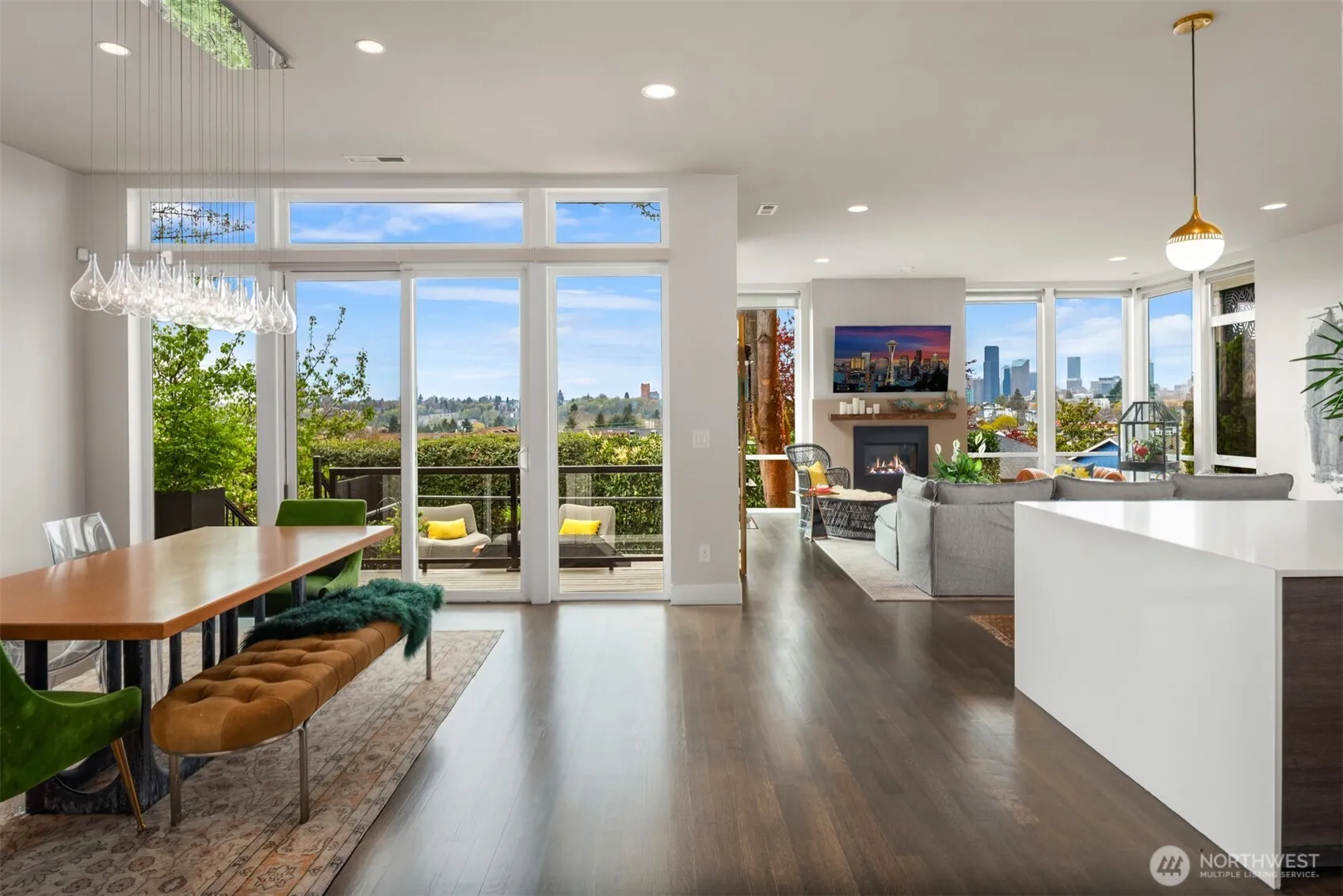 A refined expression of modern classic design, this residential masterpiece is gracefully perched along the western slope of Leschi, where soaring 10-foot walls of glass frame sweeping vistas of the city skyline and Olympic Mountains, complemented by a rooftop deck with breathtaking 360-degree views of downtown Seattle, Bellevue, Lake Washington, and beyond.Upon entry, a luminous sitting room welcomes you—an intimate yet opulent setting for conversation and cocktails. The home unfolds into a magnificent open-concept living space, where expansive views and radiant Seattle sunsets create a daily sense of awe.At its heart, the kitchen is both striking and functional, anchored by an extraordinary 50-foot white quartz island—perfect for elevated entertaining—alongside abundant custom cabinetry and generous counter space. An elegant dining area and spacious living room complete the home’s seamless blend of modern sophistication.Step outside to a serene outdoor living retreat, where a private deck invites relaxation and effortless hosting. As evening falls, retreat to the expansive primary suite, where panoramic views over the city and Puget Sound provide a tranquil, ever-changing backdrop.Two additional bedrooms, a generous office, laundry room, and guest bath complete this exceptional residence—an exquisite balance of luxury, comfort, and timeless design in one of Leschi’s most coveted settings.