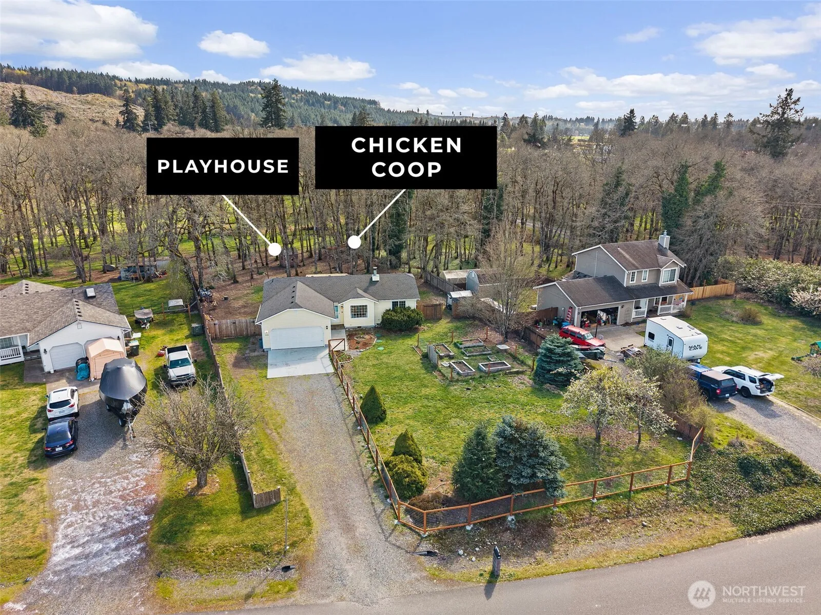 Welcome to this beautifully updated and well-maintained Tenino property, offering the perfect blend of comfort, space, and Pacific Northwest charm! This home features a newer roof and thoughtful updates throughout, making it truly move-in ready. Step outside and enjoy the incredible outdoor living space, highlighted by a very large covered back deck—perfect for year-round entertaining, relaxing, or taking in the peaceful surroundings. The expansive lot backs directly to Scatter Creek, providing added privacy, scenic views, and a connection to nature that’s hard to find. This property is ideal for those seeking a rural lifestyle, complete with a chicken coop, established fruit trees, and dedicated garden areas ready for your next harvest. A stunning oak forest adds character and beauty to the landscape, creating a serene and park-like setting right in your own backyard. Located in the desirable Tenino area, you’ll enjoy the benefits of quiet country living while still being within a reasonable distance to Tumwater, Olympia, and I-5 for commuting, shopping, and amenities. Whether you’re looking for space to spread out, start a hobby farm, or simply enjoy a more peaceful pace of life, this property offers a rare opportunity to have it all. Don’t miss your chance to own this unique and inviting property!