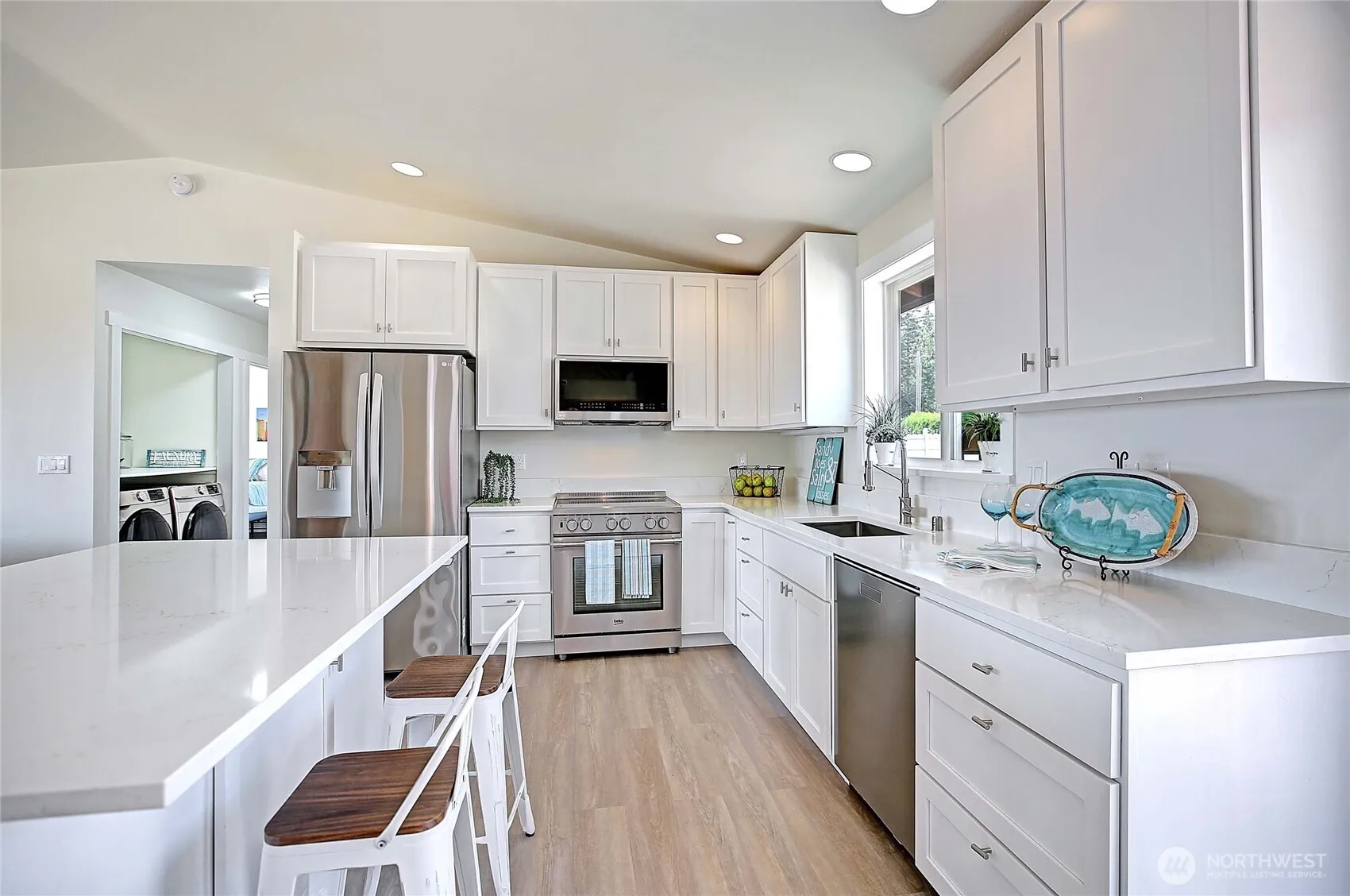 Short term 1-3 months, and furnished or unfurnished options. One Level living – rambler with water & mountain views. Delight in leisure activities with Country Club amenities offering 3 private beaches. Freshly painted inside & out, new luxury vinyl plank, new kitchen w/island, quartz countertops, custom cabinets, stainless appliances. Flex space – home office, art studio, or guest suite with a 3rd bathroom & separate entrance. New composite back deck, nice shed for storage, lots of room for a garden. Join Clubhouse (add. fee) use their pool, hot tub, workout room, classes & events. Camano is the “easy island” with no ferry. Floor plan is set up well for multi-general living. Pets negotiable, price depends on options.