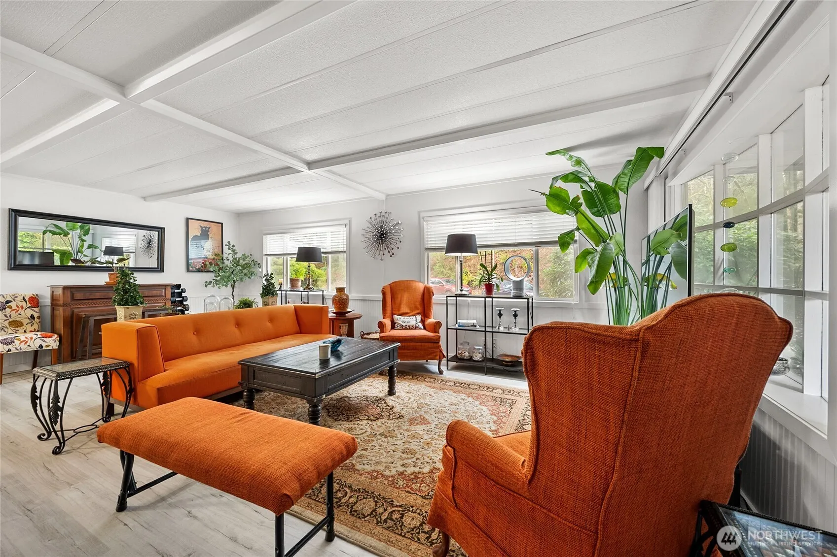 Welcome home! Nestled on the peaceful back side of the park and surrounded by beautiful trees, this spacious 1,560 sq ft, 2 bed, 2 bath home offers comfort, privacy, and great updates throughout. Enjoy peace of mind with a brand-new metal roof installed in 2024, fresh exterior paint completed last year, and interior paint updated in 2022. Step outside onto the new deck, the perfect place to relax with your morning coffee or unwind while taking in the natural surroundings. Inside, you’ll find updated flooring and a generous floor plan with plenty of space to live and entertain. Located in San Souci, a welcoming 55+ community with a friendly atmosphere, clubhouse, pool, and fun activities like bingo nights, this home offers a quiet setting while still being conveniently close to shopping, dining, and everyday amenities. A wonderful place to settle in and enjoy easy living!