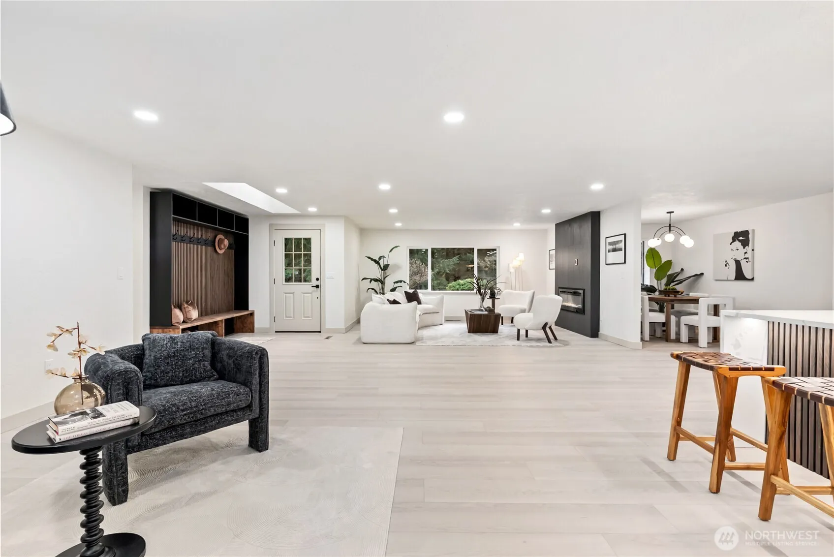 Rare opportunity to own over 2 private acres in desirable Olympia, featuring a beautifully updated farmhouse-style rambler designed for comfort and effortless living. This single-story 4-bedroom, 3-bath home truly checks every box. Thoughtfully upgraded with a new roof, heat pump, and sprinkler system, the property offers peace of mind along with exceptional functionality. A spacious 3-car garage plus an additional garage for lawn equipment provides abundant parking and storage for all your needs. Inside, the open-concept layout is warm and inviting. Enjoy both a generous family room and living room centered around a cozy electric fireplace, plus a formal dining room perfect for gatherings. The custom kitchen is a standout, showcasing soft-close cabinetry, stainless steel appliances, a waterfall-edge island, and a skylight that fills the space with natural light. The well-appointed laundry room includes a folding counter, sink, and ample storage, along with an additional powder room for convenience. Three oversized secondary bedrooms offer flexibility, while the stunning primary suite features a designer accent wall, barn doors, walk-in closet, and a beautifully finished custom bath. Fully fenced for pets and ideally located near Mud Bay, schools, and easy freeway access, this exceptional property blends privacy, space, and everyday convenience.
