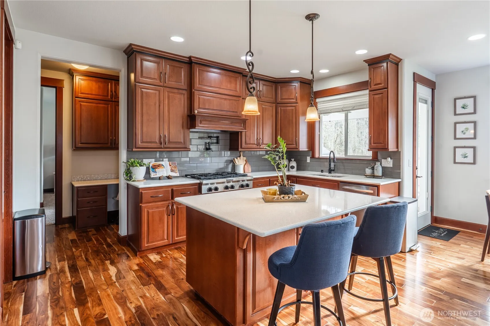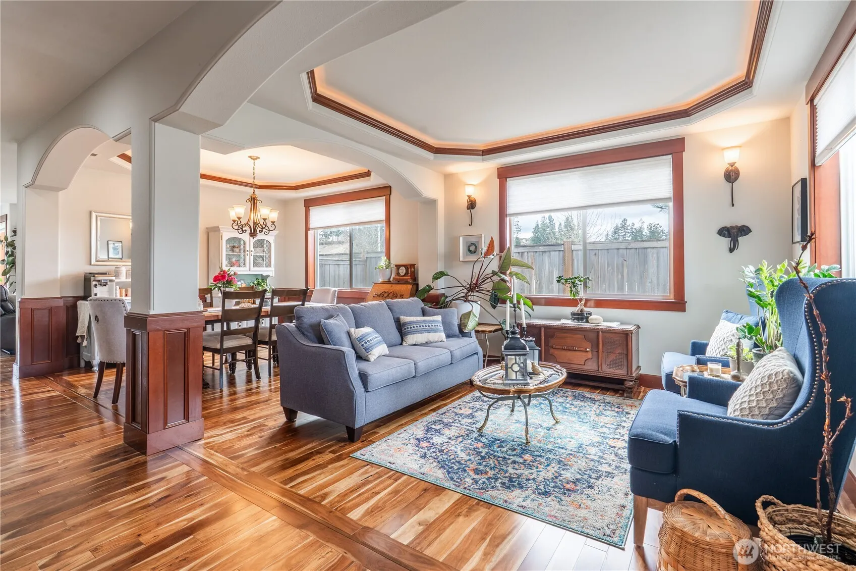 Absolute stunner in the Arbors At Sunrise. Quality & thoughtful craftsmanship – where modern design, elegance & functionality come together. What sets the tone inside… Soaring ceilings, 9 foot doors, rich Acacia hardwoods & cherry trim, custom crown moulding, archways & wrought iron spindle staircase. Let’s talk layout… Flowing floor plan from elegant entry to living, then from living to comfort in a generous family room overlooked by the heartbeat of the home – that is the Chef’s kitchen offering slab counters, commercial grade appliances incl. double oven & gas range, vast island & walk in pantry. A guest suite with adjacent 3/4 bath & office/flex space round out the main floor. But then upstairs… The king-sized primary suite brings the retreat vibes with an awesome sitting area, spa-inspired tile bath with dual headed shower, huge stand alone soaking tub & large – like LARGE walk-in closet. Big secondary bedrooms + a massive bonus/5th room give you flexibility for media, play, fitness – whatever fits your life. Now, let’s add the bonus goods… Heat pump/AC for year-round comfort inside & a backyard fit for fun with covered patio space & fully fenced, topped off with raised garden beds & storage shed. All this backs to open space that offers privacy & peace. Oh, that looks like a 3 car garage, right? Surprise… 3rd bay is tandem for the 4th car! Close to all South Hill Puyallup amenities – parks, schools, shopping, dining & more. This one hits different, AND better!