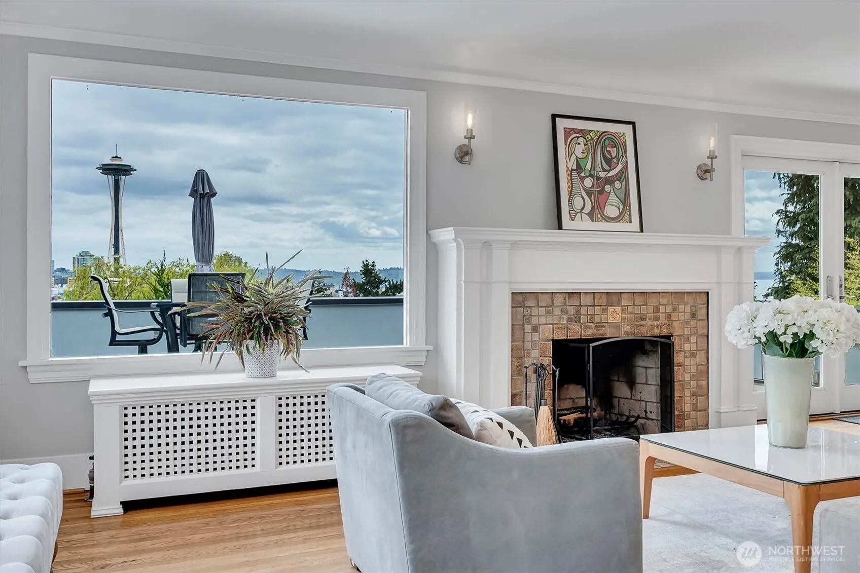 Stunning Queen Anne Colonial home located on the coveted South Slope with sweeping views of Seattle skyline and Puget Sound. The gourmet kitchen opens to a stone patio, while generous living spaces flow to a breathtaking view deck that is more than 450 sq/ft that includes a hot tub, ideal for entertaining. Upstairs features a primary suite with gorgeous views, ensuite bath, and two additional bedrooms. Lower level offers completely private Mother-in-law /guest suite with amazing kitchen and living area. Two car garage plus two additional off street parking. Incredible corner lot with gated outdoor space. Minutes to shopping, dining, schools and everything we love on Queen Anne. Less than 10min from downtown Seattle and South Lake Union. MUST SEE!!