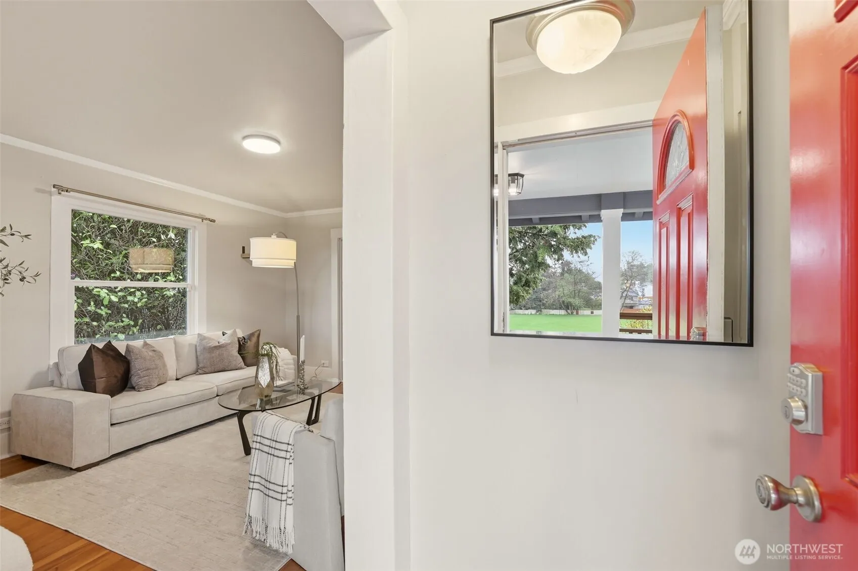 Park adjacent NW Craftsman on a private, dead-end street with rare parking and only one neighboring home. This charming 2-bed, 1 bath bungalow offers open green views, covered patios, and a fully fenced backyard oasis. Sip coffee on your covered patio overlooking Hutchinson Park with glimpses of DT Seattle & Lake WA. Two detached studios (+240 sqft, 2019) w/ additional 3/4 bath and utility sink offer incredible flexibility, ideal for guests, creative space, or income potential. Inside features original hardwoods, modern kitchen with custom counters, and a spa-like bath with radiant heated floors. Additional upgrades include LVP kitchen flooring, newer GE kitchen appliances (2021), Samsung washer and dryer, fresh interior paint, professional roof cleaning (2026), and gutter guards. Located just minutes to I 5, light rail, Lake Washington, and The Landing. Pre inspection and sewer scope available.