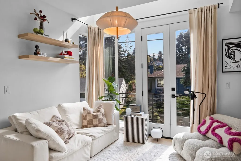 A refined expression of modern living, this newly built townhome sits gracefully on the north slope of Queen Anne, offering a seamless blend of design, comfort, and thoughtful detail throughout. From the moment you enter, the home unfolds with intention—beginning with a private lower-level suite, a full bath and laundry, ideal for guests or a quiet retreat. Above, the main level is designed for connection, where clean lines and warm textures define an open living, dining, and kitchen experience. The kitchen delivers both form and function with premium appliances, a gas cooktop, and generous cabinetry. Indoor-outdoor living is effortlessly achieved with two private patios and French doors that invite in natural light and fresh air. Climate control is handled with ease, with air conditioning ensuring comfort year-round.The top level is reserved for the primary suite—a calming, light-filled sanctuary featuring a spacious bedroom, dual closets, and a dedicated mini-split system. The bath is both refined and functional, offering a double vanity, expansive walk-in glass shower, and elevated finishes. A private rooftop deck captures sweeping views of the Ship Canal and Fremont Bridge, complete with gas and water connections. A designated off-street parking space adds convenience, while the location places you within easy reach of Fremont, Ballard, and the surrounding neighborhoods—known for their vibrant dining, boutique retail, and scenic outdoor access.