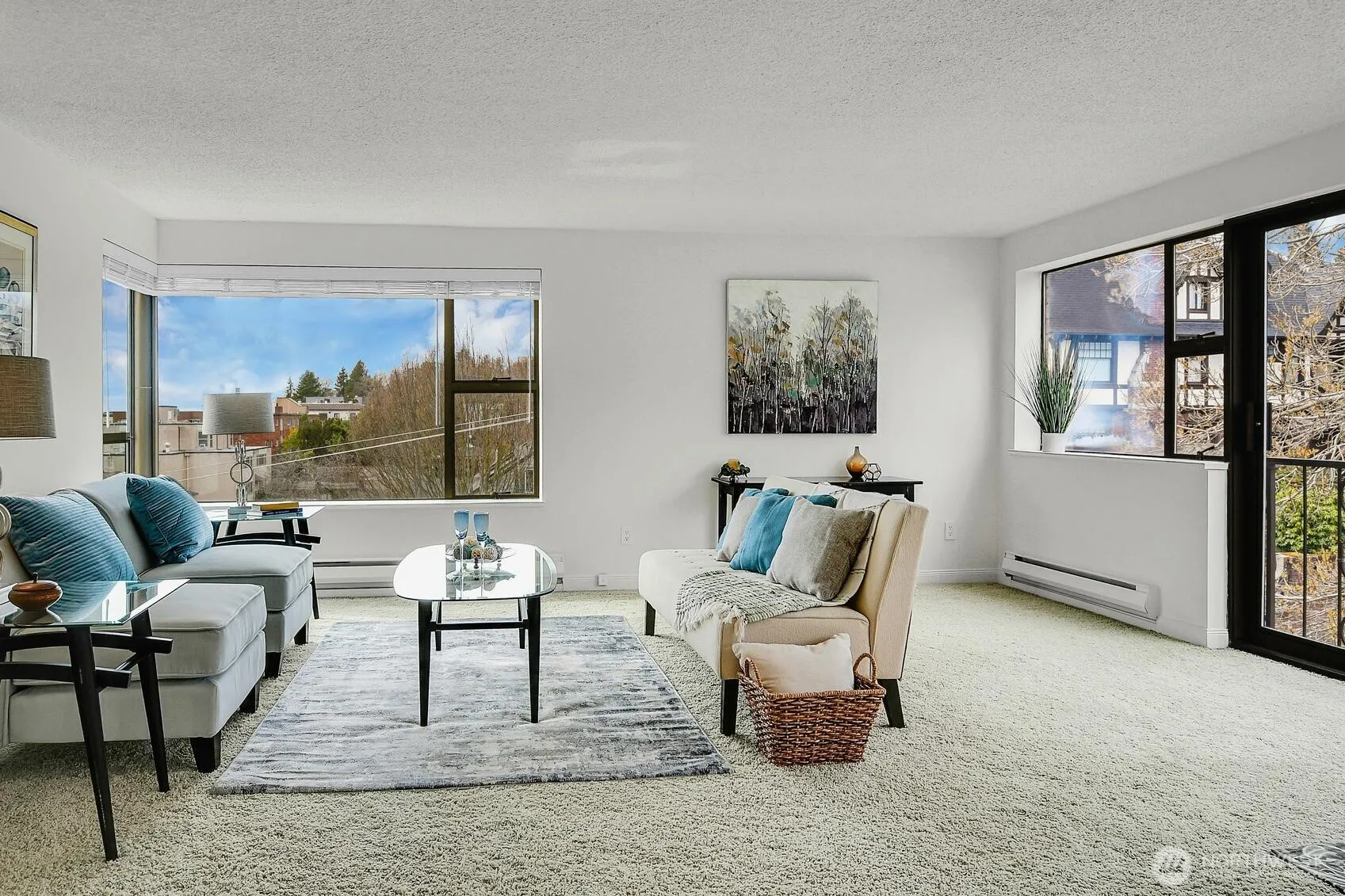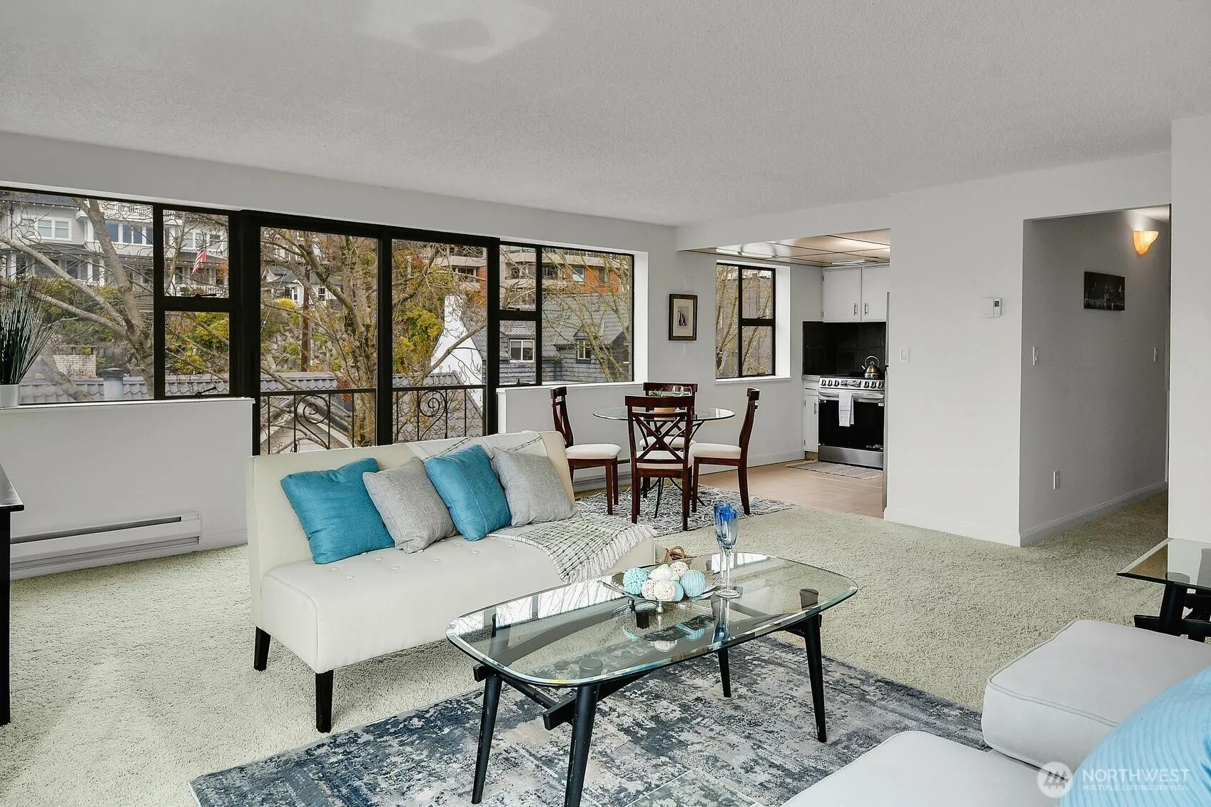 Amazing light filled, top floor 2 bedroom, 1.75 bath corner unit at the Hill House on Queen Anne’s south slope features dazzling expansive views of Elliott Bay, Puget Sound & beyond! Features include windows on 3 sides for maximum natural light, a great floor plan for easy living & entertaining, all new stainless steel appliances, new counters/sinks in both bathrooms, fresh paint throughout, plus abundant storage & closets. 1 deeded parking space is included. 4 Guest Parking Spaces! Lovely outdoor common area garden space! Convenient location is close to restaurants, shopping, transportation, parks, waterfront, downtown, South Lake Union, Amazon, plus more! HOA Dues include water, sewer, garbage, building insurance, professional property management fees, & reserve account.