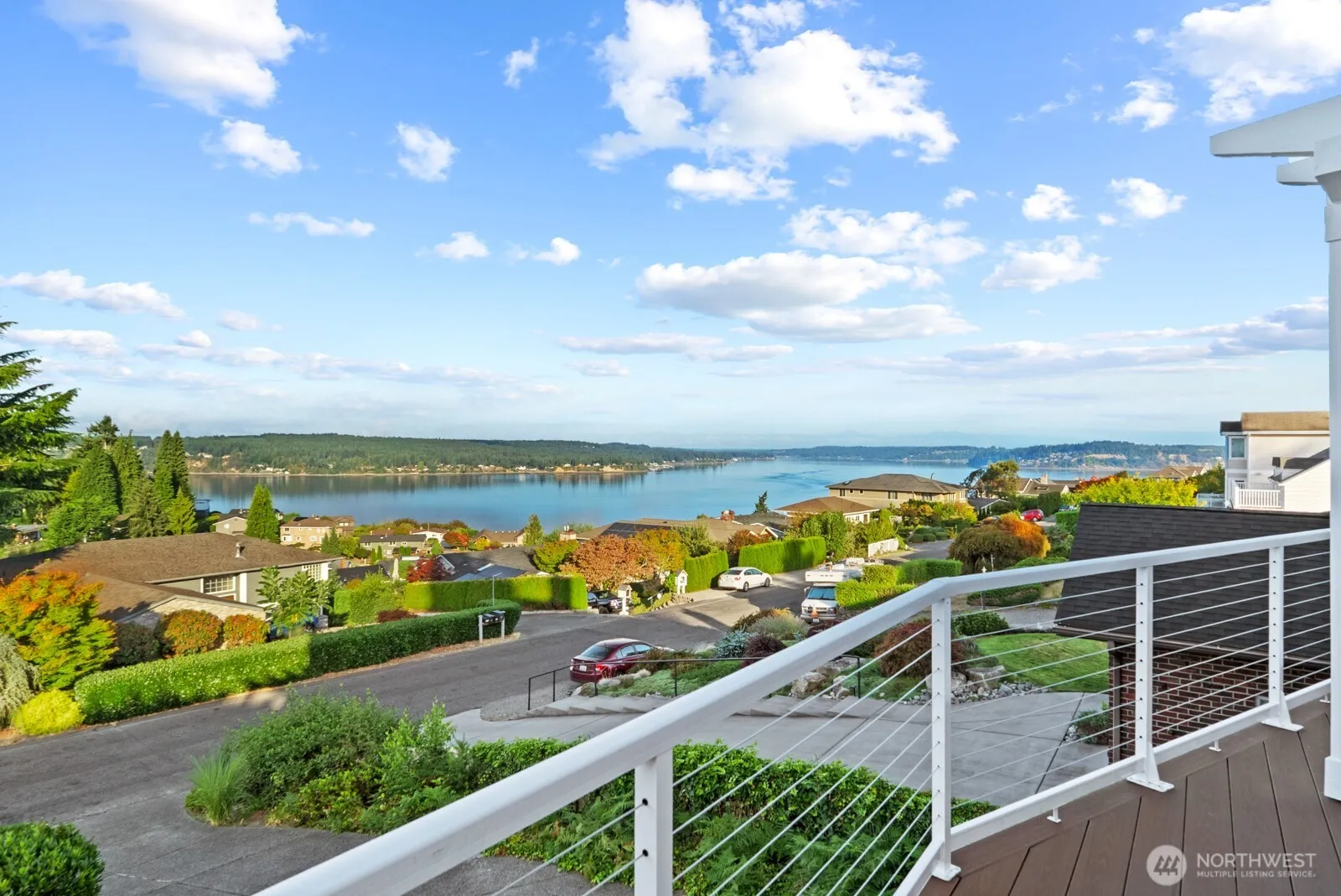 Unobstructed, sweeping views of the Olympic Mountains & Puget Sound—stretching from Fox Island, Hale Passage & Pt. Fosdick, down to the Narrows—right from your living room. Residence sits on a large 11,000 sf lot offering both privacy & space to enjoy the outdoors. Fully fenced yard with generous deck & fruit trees. Enormous kitchen, big windows, perfect for entertaining. Wide-open floor plan with tall ceilings & big windows, enhanced by hardwood floors, hand-carved archway & cozy gas fireplaces. Features a lower level bonus room with additional dwelling potential or studio. A/C & elegant updates throughout. Located in UP School district. Just a short jaunt to Chambers Bay Golf Course, along with great coffee shops, grocery & dining.