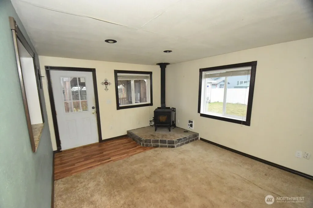 HUD rambler on large level lot waiting for you! Home has 3 bedrooms, full bath, open living room, and kitchen that has access to deck and fenced backyard. Kitchen has granite counters, slate floors, & stainless appliances. Wood stove in living room to help heat the home. There is wiring for a hot tub or something else in the backyard. Shed is large with 2nd room on the backside. Fenced backyard has large deck, shed for wood, & room to play. View of the mountains as well. FHA case # 566-402382.