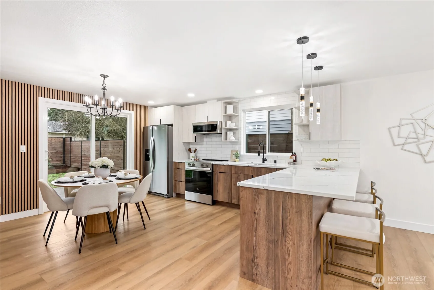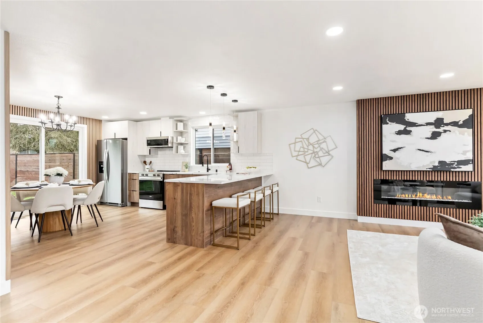 Beautifully renovated rambler blends style, function, &convenience. Thoughtfully updated from top to bottom, it features all-new finishes including a new roof, furnace, A/C, LVP flooring, siding, insulation, and stylish tile in the bathrooms. The spacious floor plan offers a welcoming living room with a cozy fireplace, a new kitchen with an eating area, and brand-new stainless steel appliances. With three bedrooms and 1.75 baths, this home is ready for comfortable modern living. Outside, enjoy the privacy of a fully fenced yard. Located just minutes from Highline College, Des Moines Marina, parks, shops, and waterfront dining. Enjoy easy access to SeaTac Airport, I-5, and the Link light rail station—perfect for commuters /travelers alike.