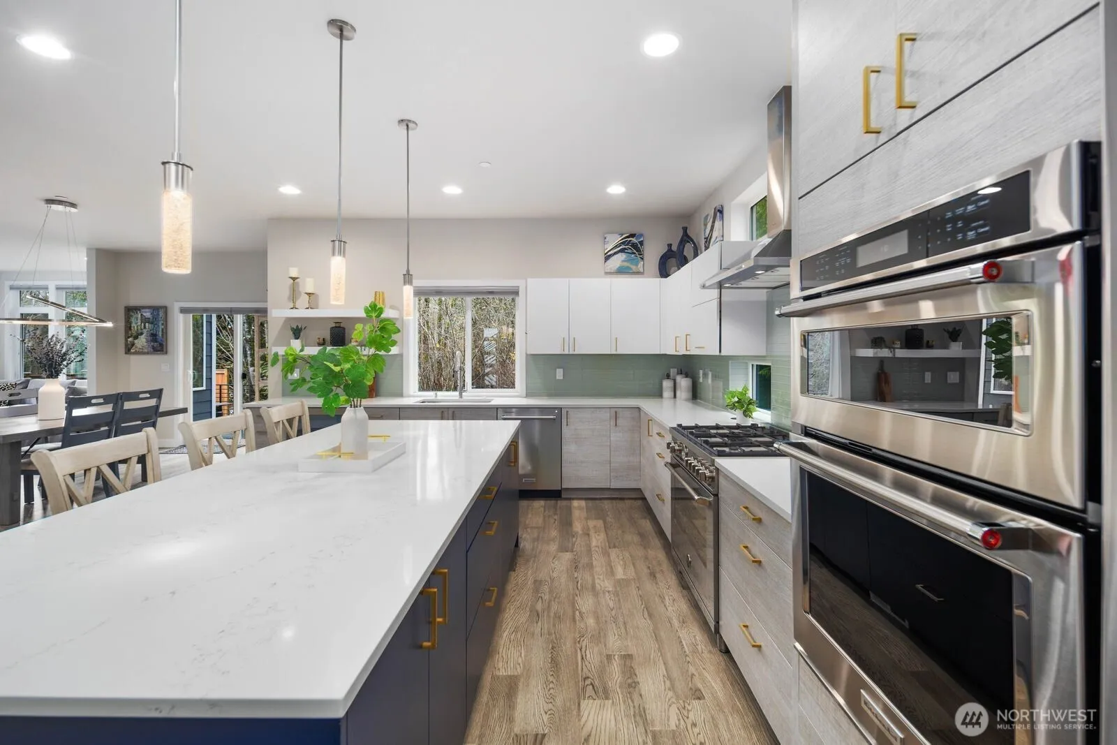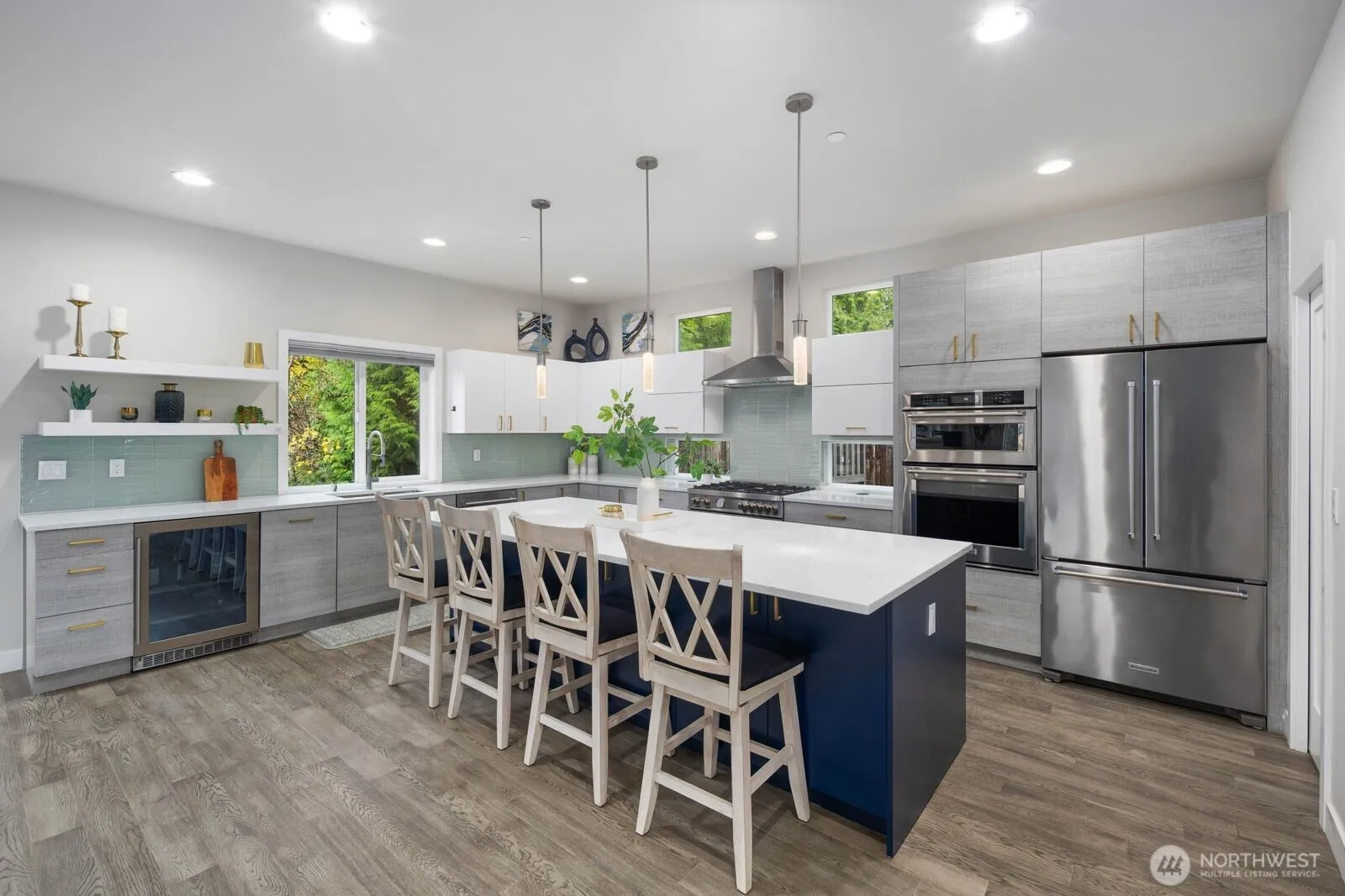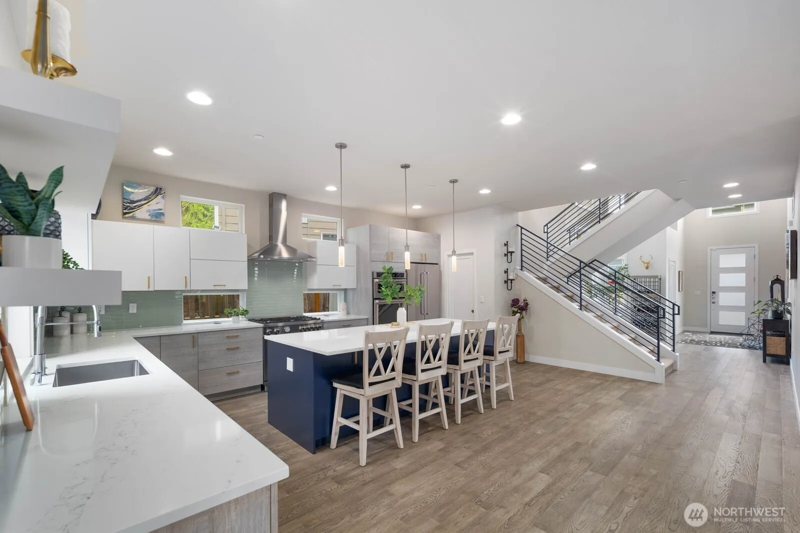 Experience this stunning modern 5 bedroom home in the luxury enclave of Hidden Meadows. Upon entry you’ll find a light & bright interior w/ 20 ft ceilings, a statement staircase w/ sleek metal railings & gorgeous hardwoods. The sprawling chef’s kitchen includes quartz counters, a high-end Bertazonni gas range, double ovens & wine fridge. A desirable main-floor bdrm w/ full bath adds convenience & flexibility. The upper level offers 4 additional bdrms + 3 baths. The highly-functional low-maintenance backyard backs up to a protected green belt & features a $50K tiered patio w/ modern metal railings & turf. Premium blinds, A/C, 220 outlet for EV Charging. Coveted Northshore schools including Bothell High. Just mins to Downtown Bothell & I-405