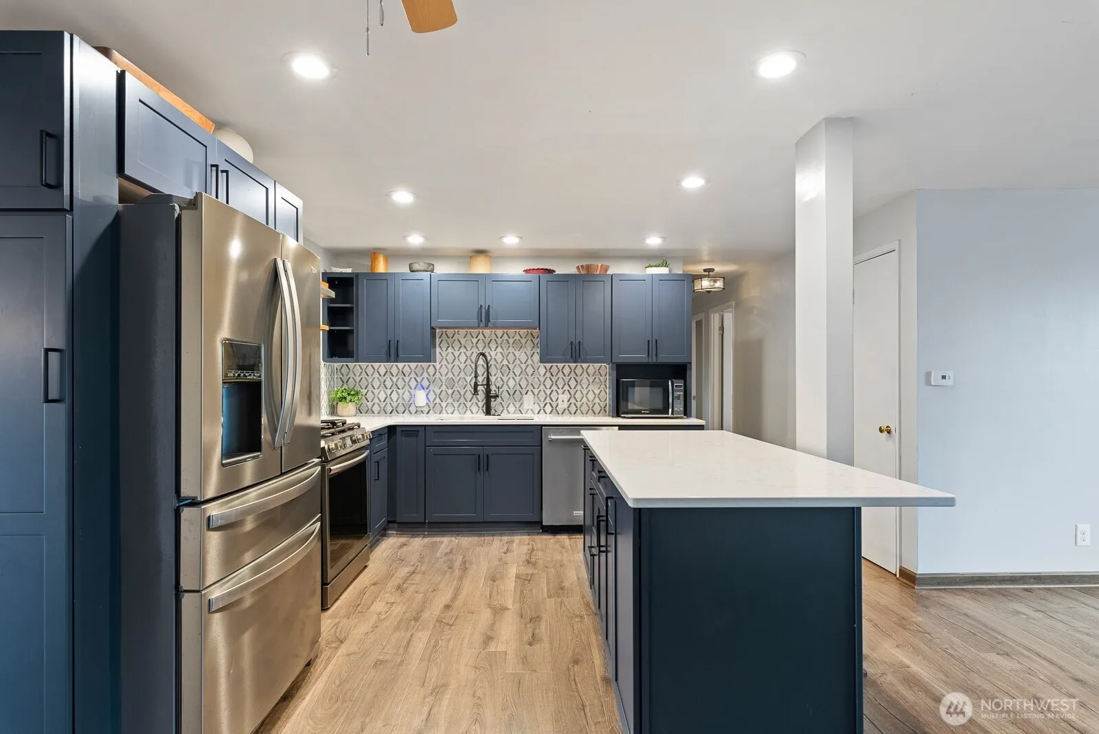 Spacious, light-filled living meets comfort and flexibility in this beautifully updated Anacortes home tucked away on a quiet dead-end street. Step inside to an inviting open-concept layout where the fully remodeled kitchen becomes the heart of the home—featuring quartz countertops, stylish cabinetry, a walk-in pantry, and an eating bar that flows effortlessly into the main living area. New flooring throughout the main level adds warmth and continuity, perfect for everyday living and entertaining. Enjoy your morning coffee in the sun-filled dining space or unwind in the cozy living room overlooking the peaceful neighborhood. The private primary suite offers its own bath and a quiet retreat at the end of the day, while three additional bedrooms and a second full bath provide space for guests or hobbies. Downstairs, you’ll find versatile bonus spaces including a family room or a private office/den with its own entrance—ideal for a home business, studio, or guest area. Step outside to a fully fenced backyard designed for relaxing and gathering, with room to garden, play, or entertain. Three large storage sheds offer incredible space for tools, hobbies, or outdoor gear. Located just minutes from schools, parks, and all that Anacortes has to offer, this home blends comfort, function, and opportunity—with room to add your own personal touches over time. If you’ve been looking for a warm, move-in-ready home with space to grow and make your own—this is it!!