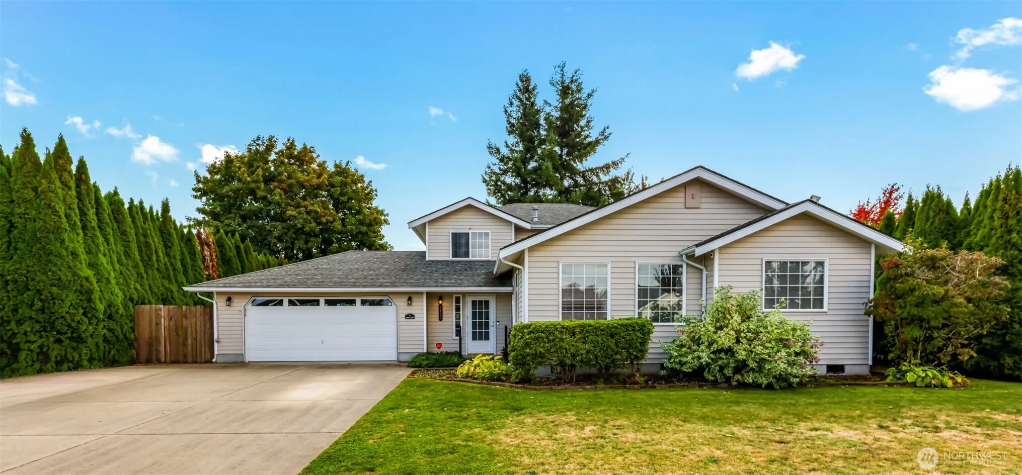 Welcome to your new home! Located on a cul de sac in desirable Lynden, this solid 2,198 square foot home is waiting for your imagination & updates! Inside you will find a spacious primary bedroom with a 3/4 bathroom & dual walk-in closets, a main floor that flows easily from living room to kitchen & down to the bonus room. Also on the lower level is a large walk-in pantry, extra storage & separate office space. A sliding door leads to a 3 season patio that is wired with cable and has a tv mounting bracket – perfect for hosting friends for all kinds of events. From there, you exit into a large back yard with 3 storage sheds…big enough for your inner gardener. Home is also wired for security alarm & a/c.