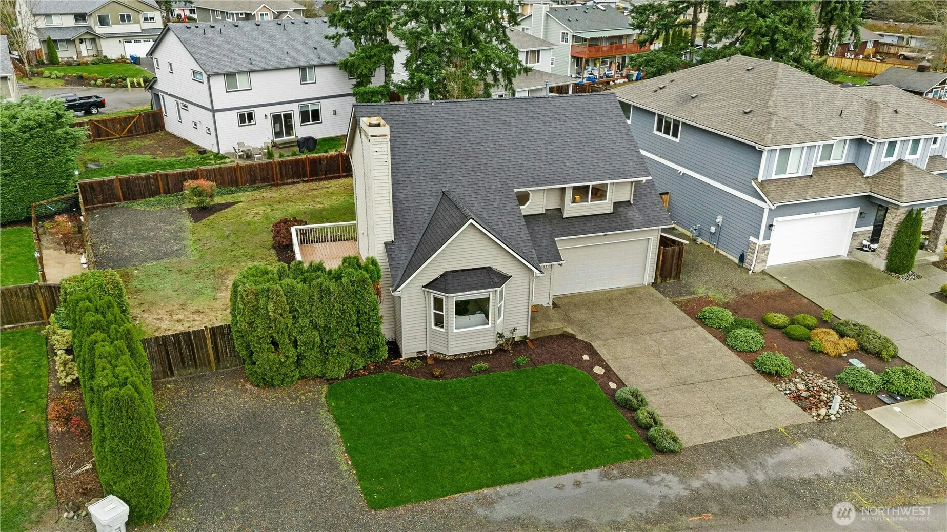 Welcome to this beautiful East Renton home. Invite your guests into an open floorplan with vaulted ceilings, a cozy wood-burning fireplace and a stunning new kitchen with stainless steel appliances. The kitchen flows into the dining and living areas, perfect for daily living or entertaining. The upper level includes a primary suite with a private bath and walk-in closet, plus two additional bedrooms and a full hall bath. Outdoors, enjoy a spacious deck, fully fenced backyard for pets or play, and a covered area for your potting shed, hobbies or projects. RV parking, attached garage, and ample driveway space. Home is pre-Inspected for peace of mind. Convenient access to schools, parks, shopping, trails and freeways. Move-in ready!