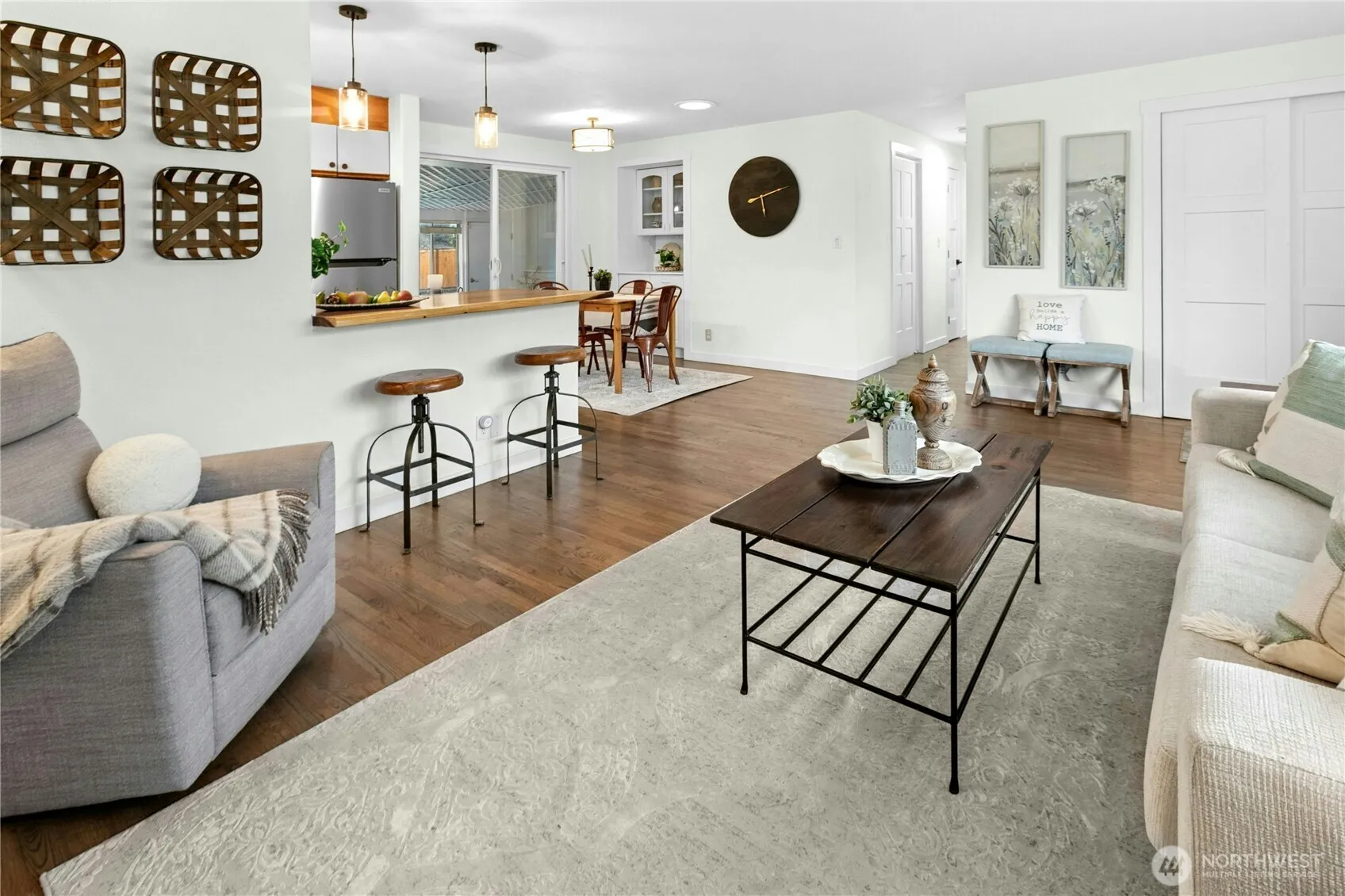 Beautifully updated Renton Highlands rambler. This spacious home has room for everyone & features an open floorplan, refreshed kitchen & updated baths. Fresh paint, refinished hardwood floors, new doors & lighting. The solar tubes bring in light & ceiling fans, gas fireplace, & trendy barn door add extra charm. The 1,576 SF home offers a large family room AND an attached 611 SF unheated sun/playroom & workshop for a whopping 2,187 SF total per mls! The primary suite has a ¾ bath & dual closets. Outside, find a fully fenced yard, play structure, garden space, firepit, RV parking, a sprinkler system, and a newer roof. Convenient location near Boeing, The Landing, parks, and easy I-405 access. A commuters dream. Home has been pre-inspected.