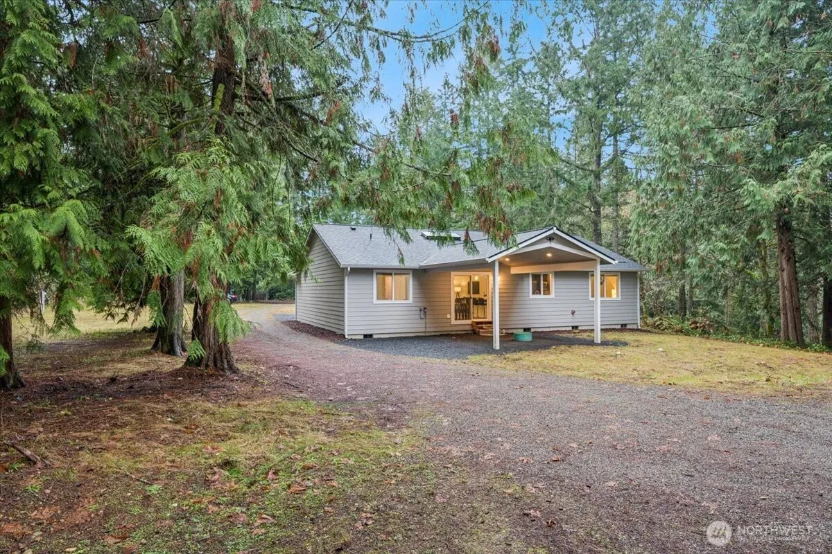 Serenity in Lakebay awaits! This newly built home offers vaulted ceilings, an open floor plan, and a spacious kitchen with granite counters, SS appliances, dark birch cabinets, tile backsplash, and skylights. The primary suite includes a walk-in closet and 4-piece bath. Enjoy 4 acres of privacy with two septic systems and power supplies, allowing options for an ADU, RV, or shop. A huge 2,400 sq ft garage/shop provides incredible space for storage, projects, or extra vehicles. So many possibilities!