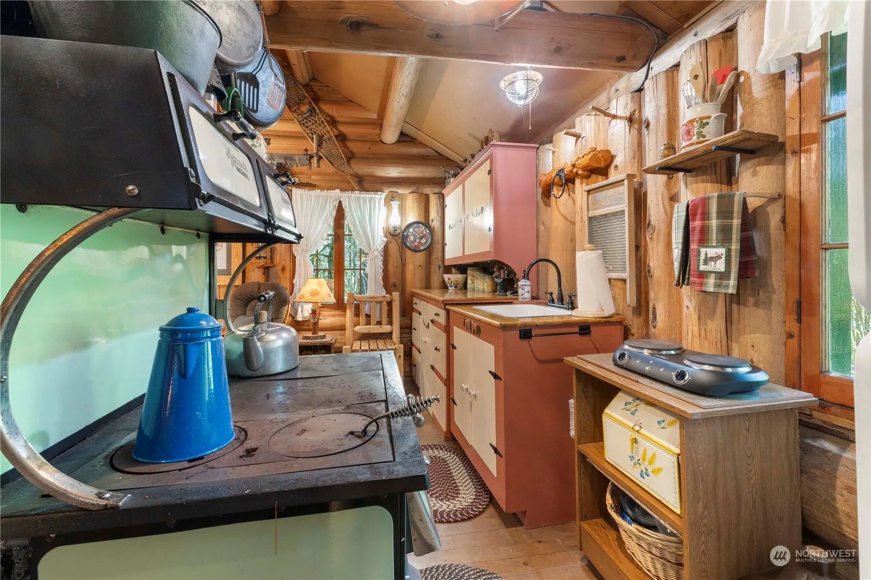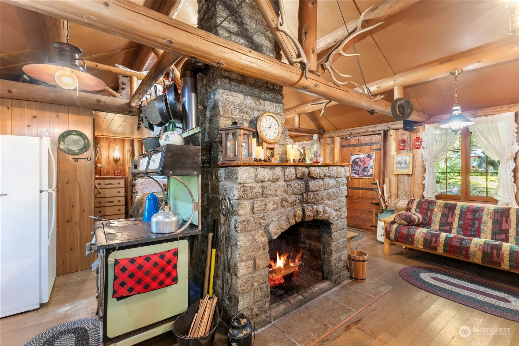 White River Cabin #9. Well appointed, small but mighty, Forest Service log cabin just 15 minutes from Crystal Mountain. Timeless old growth setting close to The Dalles Campground. First time on the market since it was built by current owners in 1940. Well loved and maintained, with hand-made furnishing throughout the cabin. Skiing, hiking, biking and stargazing, something to keep you busy in every season of the year. Beautiful wood burning fireplace and stove keep the cabin toasty warm on cold nights. Studio bedroom on main floor and sleeping loft for expanded seating/sleeping area. Large woodshed, firepit and outdoor handmade BBQ. This cabin is the perfect quick get away. Water & Septic. Cash only;leased on Forest Service land.
