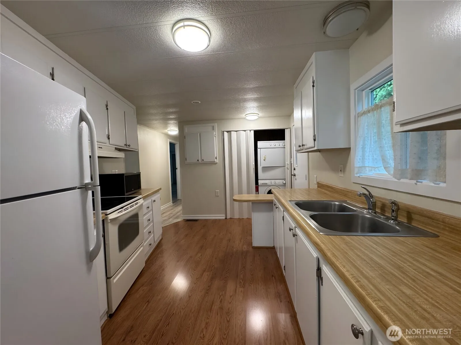 Beautifully updated 2 bedroom home featuring 1 full bath and a .75 bath across 960 sq ft in the sought-after 55+ Leisure Estates community. Tucked on a quiet dead-end street with serene greenbelt views, this home offers newer double-pane windows, plush carpet, and a bright, comfortable layout. Enjoy in-unit laundry, a 2-car side-by-side carport, and close proximity to shopping, dining, and 405. A peaceful, well-kept retreat in the Renton Highlands.