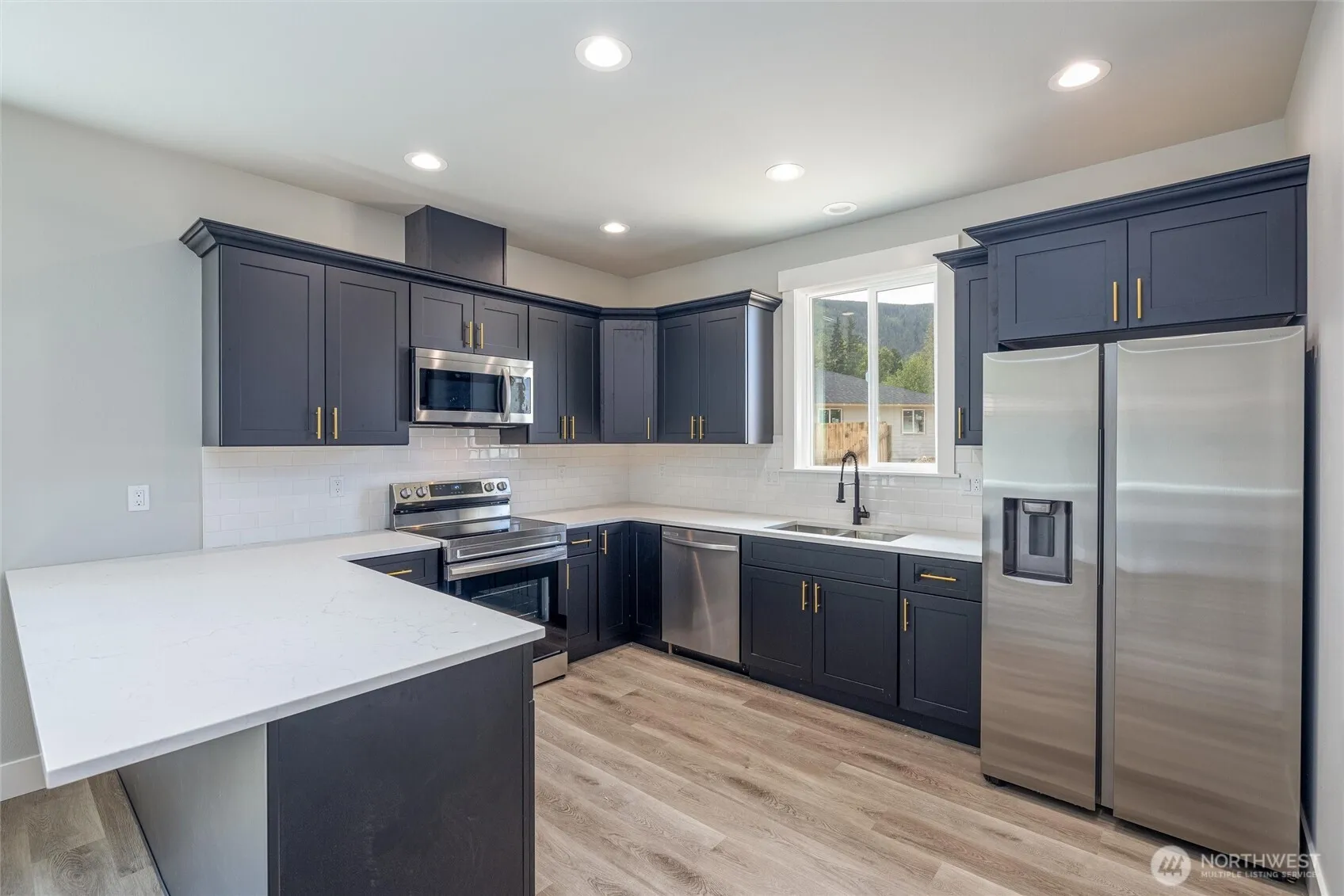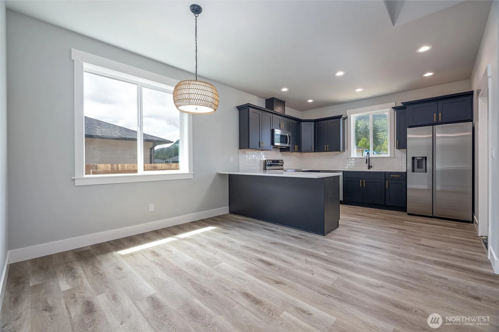 BRAND NEW 3 bedroom, 2 bathroom home with beautiful vaulted covered back patio. Features include stainless appliances, cathedral ceilings, quartz counter tops, tile back-splash, and features a heat pump so you get central A/C. Stunning peninsula style kitchen with soft close cabinets and dovetailed soft close drawers. The oversized 2 car garage is extra deep on one side to fit a bigger vehicle or have a workshop area! Garage is wired to plug in your electric vehicle and this house also is wired for a generator! Enjoy living in a brand new gated development with stunning mountain views! Only about a 30 minute drive from Bellingham.