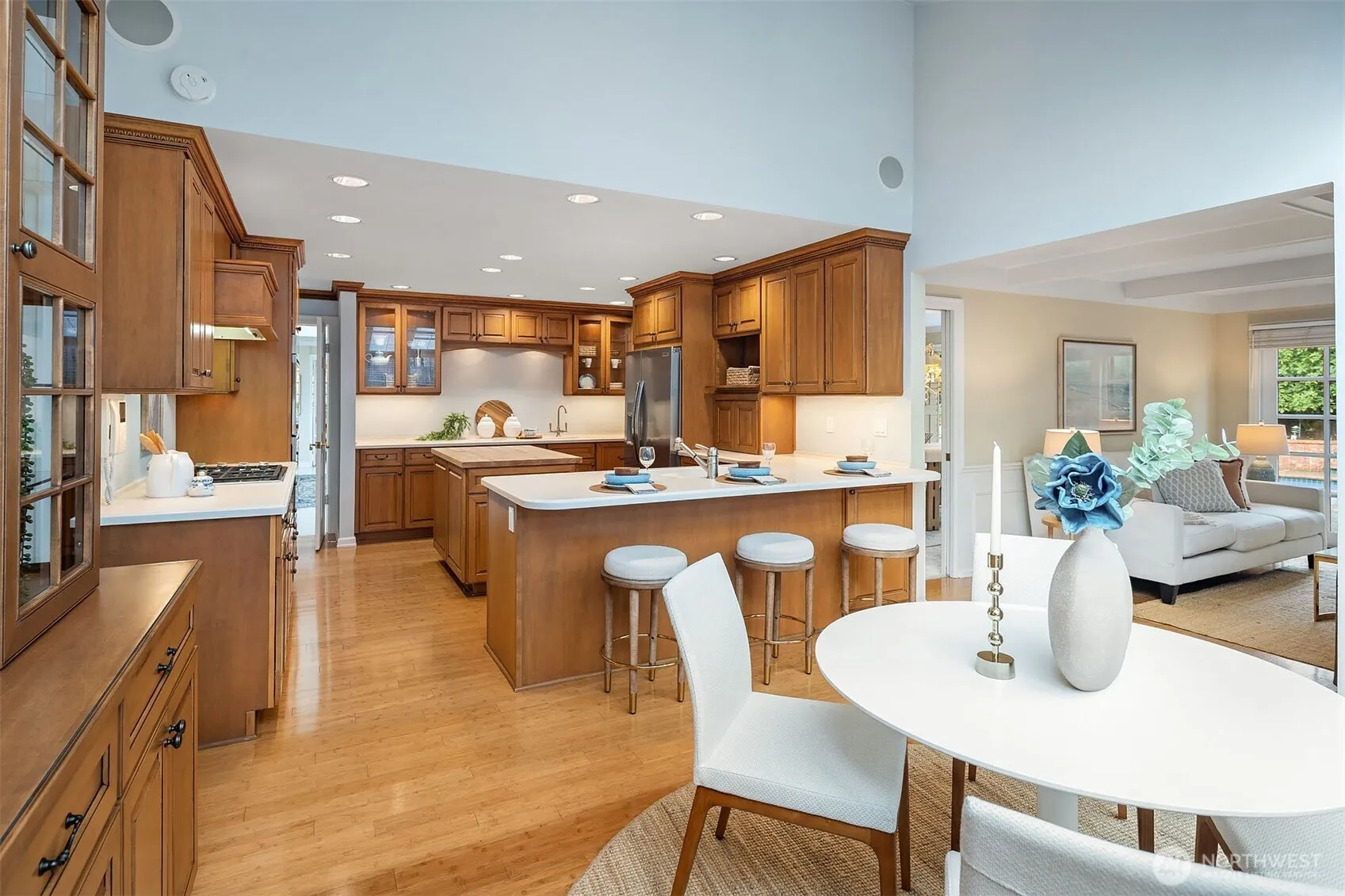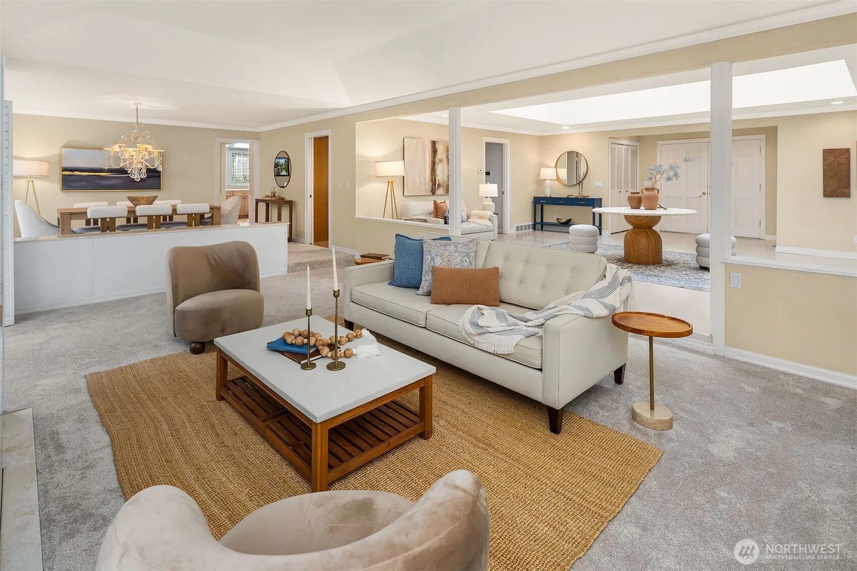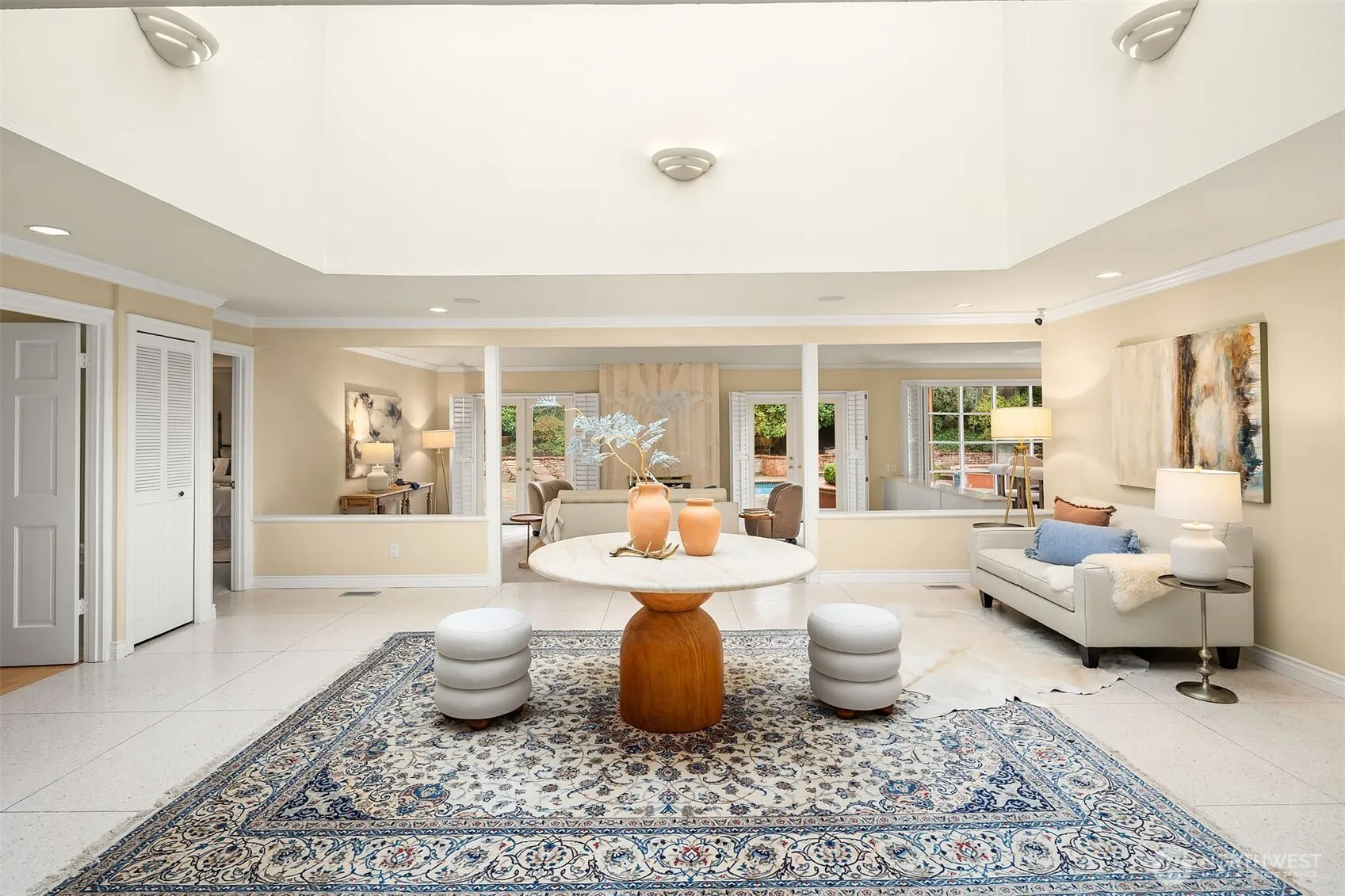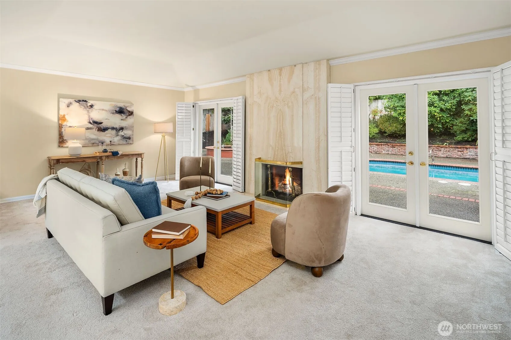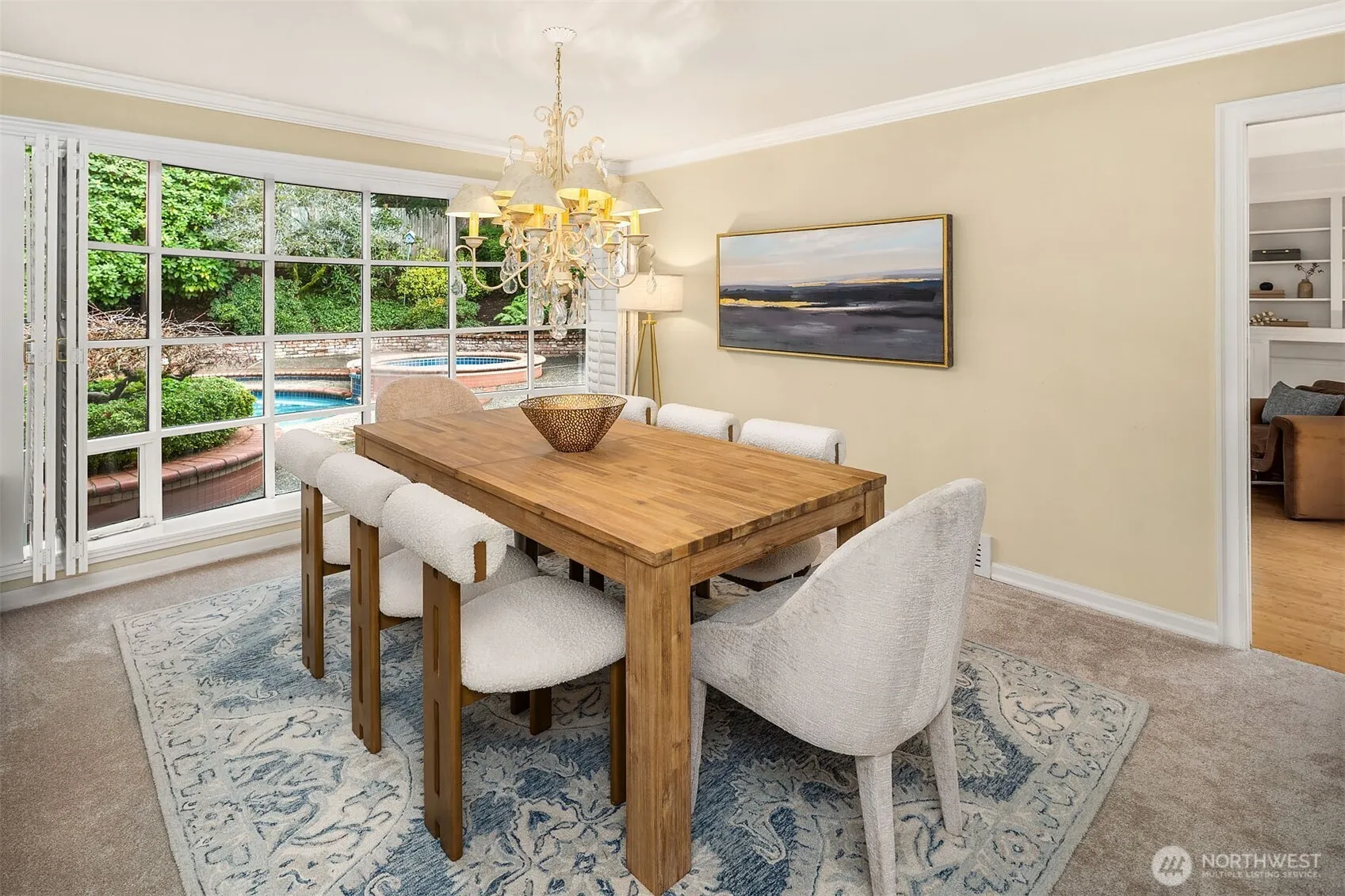 Welcome to Yarrow Point! This sought-after rambler combines timeless architecture with effortless indoor–outdoor living. A charming courtyard entry and three-car garage set the tone for this 3,290 sq. ft., 3-bedroom, 5-bath home. Light-filled interiors, classic detailing, and an east-facing orientation create warm, inviting spaces throughout. Formal living and dining rooms showcase a wall of windows framing tranquil views, while the cook’s kitchen with sky-wall windows and a cozy breakfast nook offers the perfect spot to start the day. Sliding doors open to a resort-style backyard featuring a sparkling pool and relaxin0g hot tub—ideal for entertaining or unwinding in complete privacy.