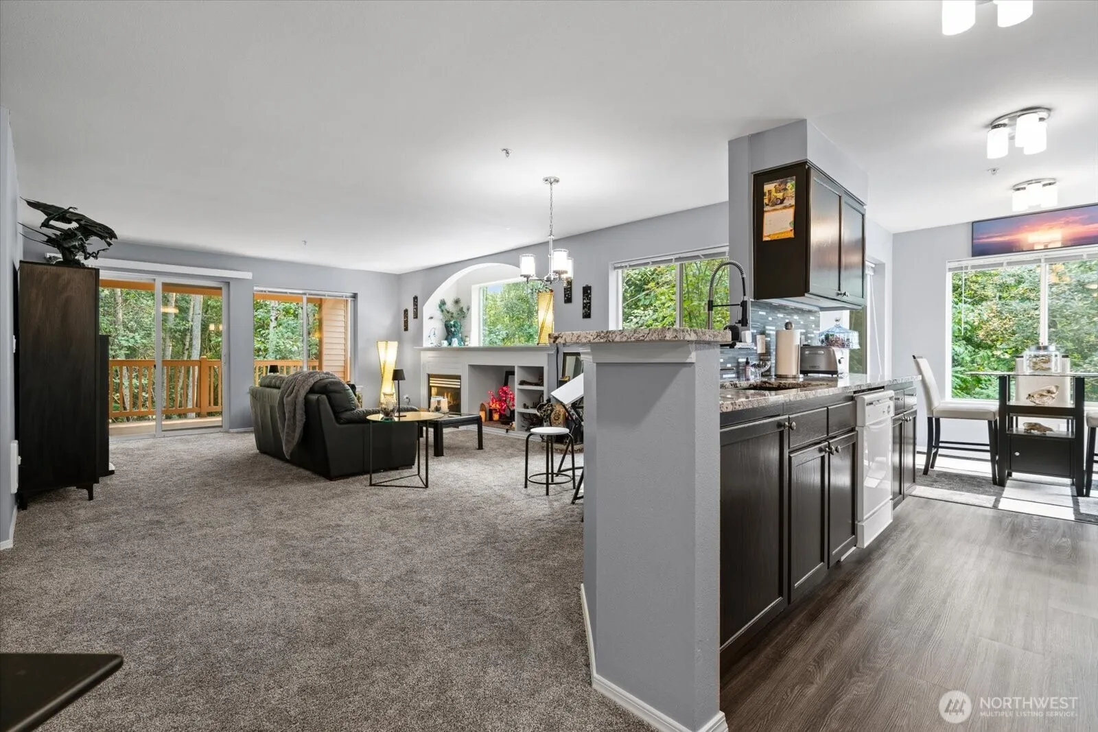 Surrounded by protected wetlands, embrace privacy and serenity in this 3 bed/2 bath 2nd floor corner unit in the Garden Grove community. Enjoy a private deck with direct access to the greenbelt and step inside to find modern updates throughout, including granite countertops, a granite kitchen sink, luxury vinyl flooring, fresh carpet, and a newer water heater. Soak in the forested views from the open-concept living and dining areas and unwind by the fireplace that warms the entire home with ease. The spacious primary suite boasts direct deck access and a step-in closet in the ensuite bath. Part of the coveted Mukilteo School District. You’ll appreciate the easy access to I-5, Hwy 99, transit, restaurants, and shopping. Pre-inspected!