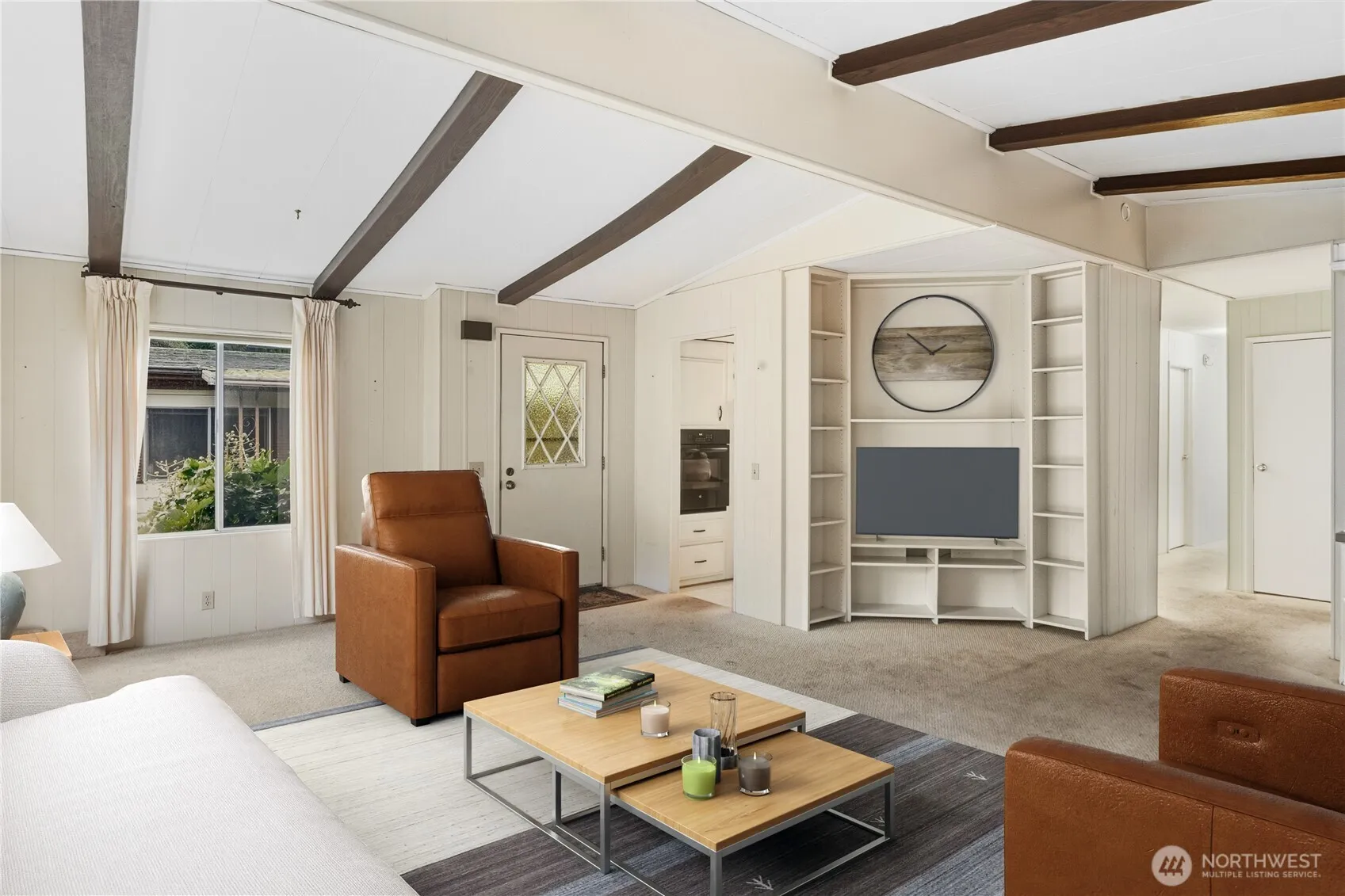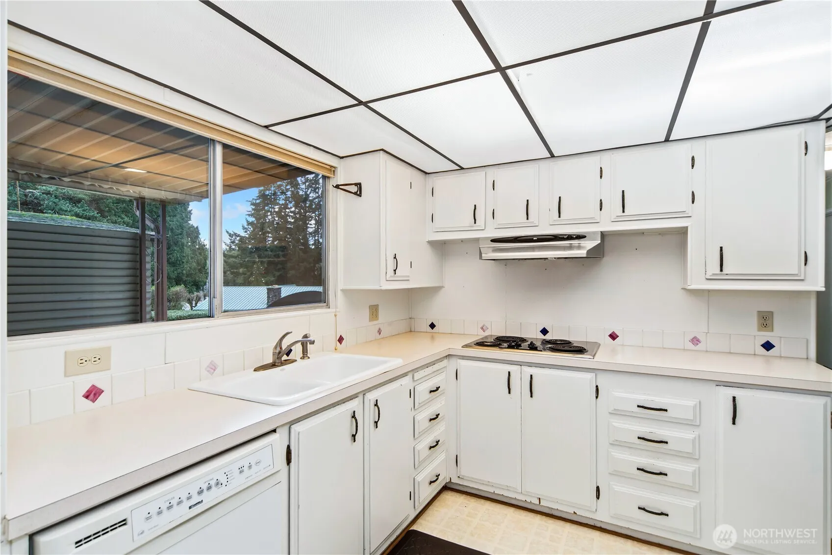 Enjoy Senior Living at Cedar Glen! This home is perfect for a buyer looking to add their personal touches. The light-filled living and dining area features vaulted ceilings, a propane fireplace, built-in shelving and hutch. The spacious kitchen offers ample cabinetry, counter space and extra freezer. The primary bedroom includes a large walk-in closet and bath with a soaking tub, separate shower, and abundant storage. Additional highlights include a covered front porch, a large heated shop and parking on both sides of the home. Cedar Glen offers monthly community activities; bingo, cook offs & more! Convenient location, mins to Poulsbo shopping & downtown, Clearwater Casino and Bainbridge-Seattle Ferry.