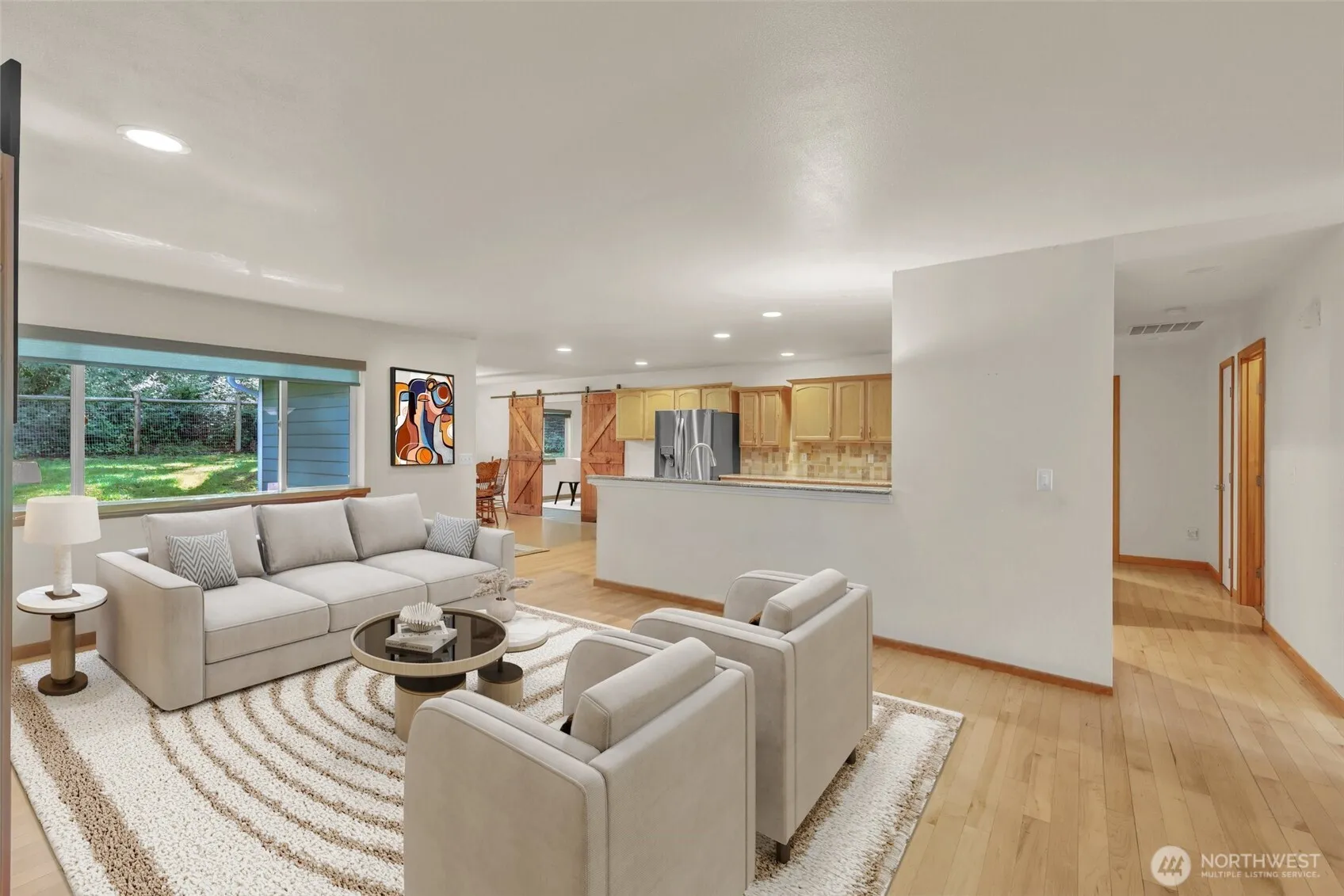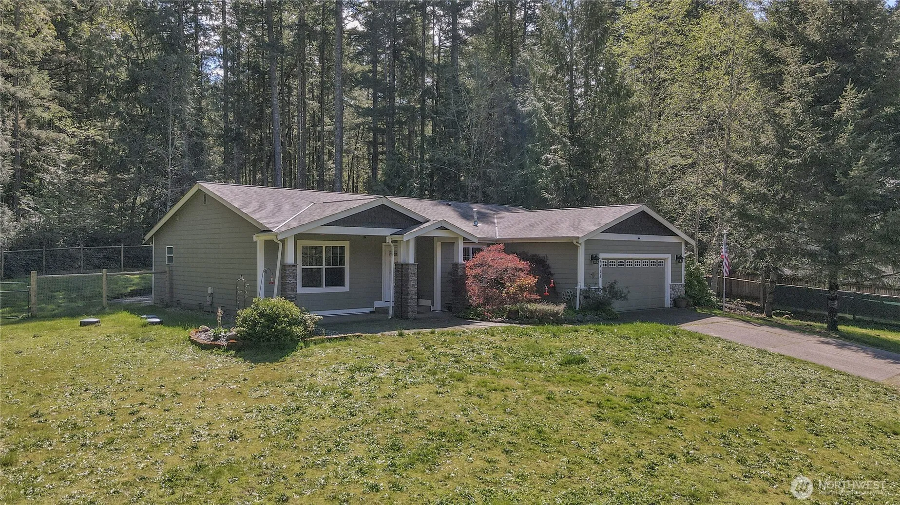Finally—a home that truly has it all on one level! Located on 1.33 fully fenced acres in desirable Glen Cove Estates. Just minutes from the grocery store, restaurants and coffee shops at Key Center, this beautifully maintained rambler offers soaring ceilings, maple hardwood floors, and an open layout designed for comfort and entertaining. The gourmet kitchen features quartz countertops, stainless appliances, and abundant cabinetry. The spacious primary suite includes vaulted ceilings, dual walk-in closets, and a stunning 5-piece bath with a new custom shower. Two additional bedrooms and a full bath sit on the opposite side of the home, and an oversized bonus room adds flexibility. Outside includes a new roof, a 10×20 shed, and room for RV, boat, or future shop.