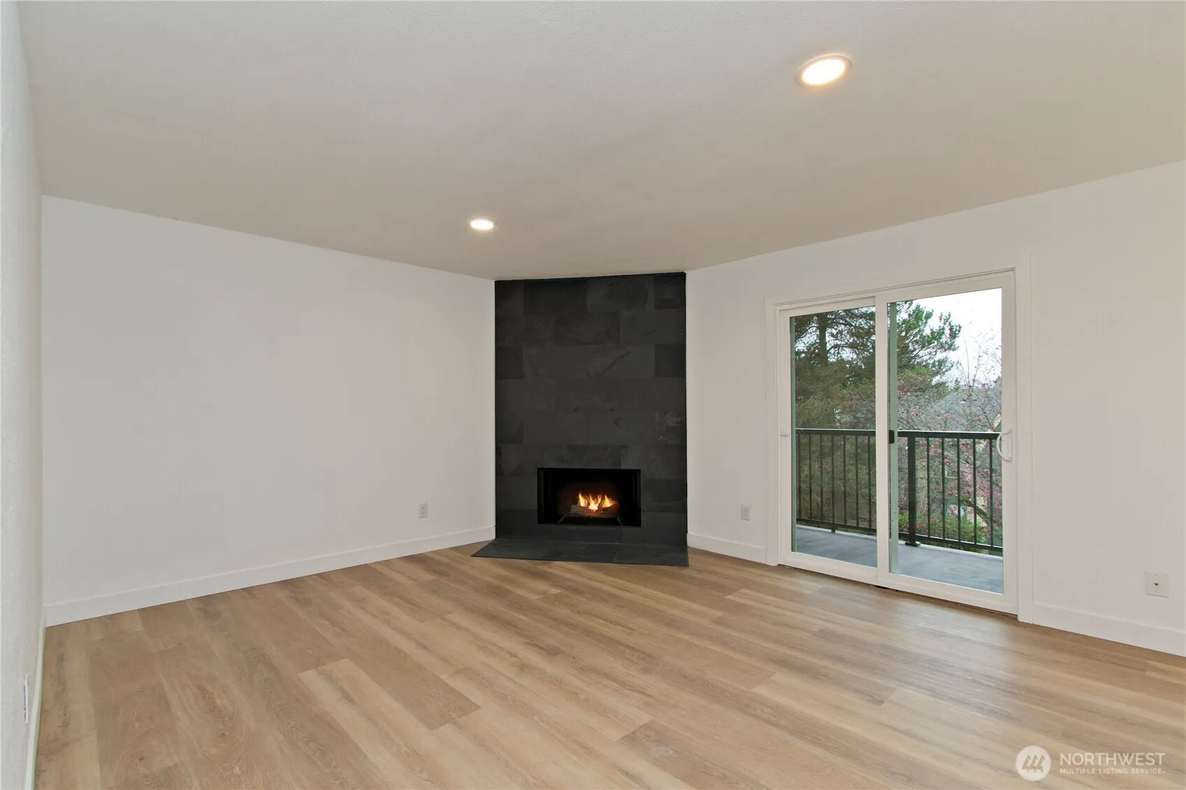 Stunning, fully updated 2-bed, 1-bath condo in the desirable Kingsgate community. Step inside to an open floor plan with designer finishes and a light-filled living/dining area featuring a cozy wood fireplace and access to a private balcony with storage. The kitchen shines with new stainless steel appliance & quartz countertops. Updates include NEW interior paint, flooring, lighting, fixtures, windows, and millwork. Enjoy a beautifully updated bath with NEW vanity & custom tiled shower surround. Located in top-rated Northshore schools and minutes to downtown Kirkland, parks, restaurants, tech campuses, trails, and I-405. No rental cap & no special assessment—ideal for investors or homeowners. Assigned parking plus ample guest parking