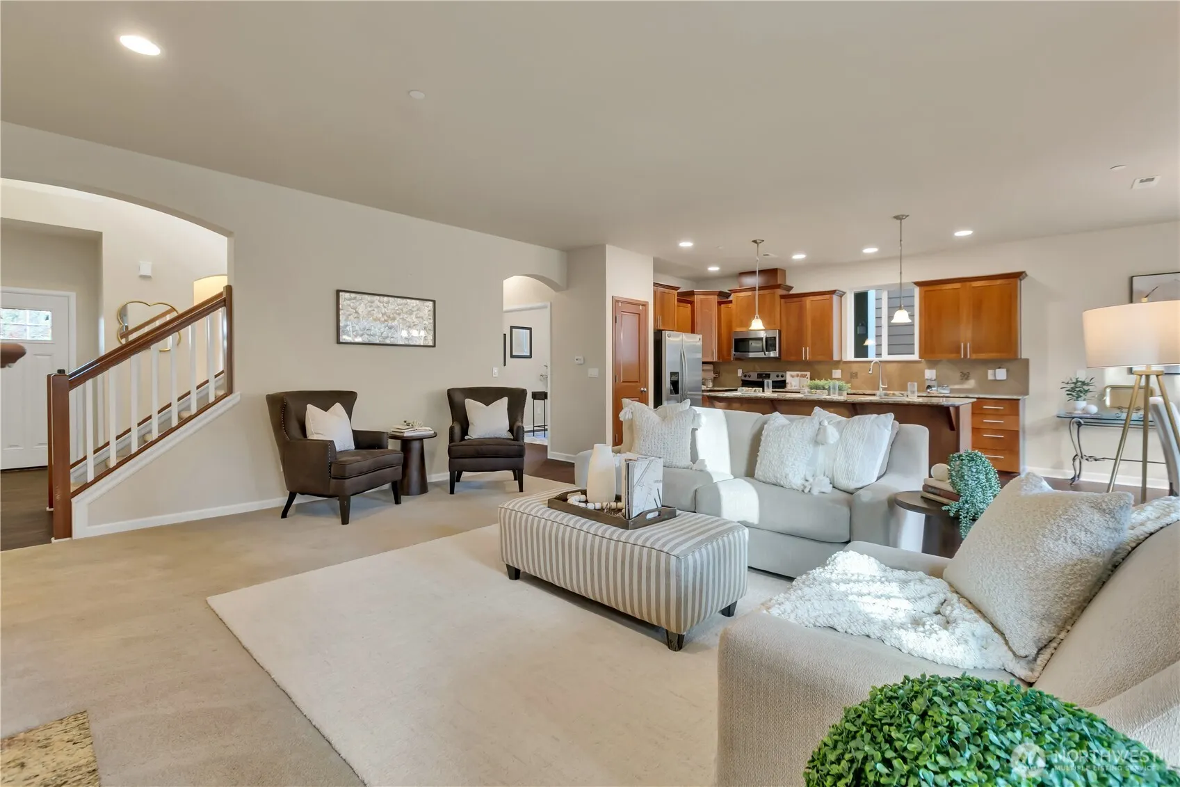 *NEW PRICE – REDUCED $10,000* Apply towards 2/1 year interest rate buy down or closing costs! Stunning Soundbuilt craftsman home in Copperfield. Sophisticated 3-level residence features dramatic vaulted entry, tasteful archways & exceptional design. Open main floor includes spacious office (or 6th bdrm) w/French doors & coffered ceilings, living room w/cozy gas fireplace, gourmet kitchen w/ample granite counter space & stainless steel appliances. Expansive primary suite offers a luxurious 5-piece ensuite bath and walk-in closet. Large bonus room on the third level is perfect for a library, theater or 5th bdrm. Covered back deck extends entertaining and relaxation spaces. The property sits on a huge, fully fenced level corner lot backing to a picturesque greenbelt, providing maximum privacy. Nearby community park, trails, award-winning Sumner School District & 2-car garage.