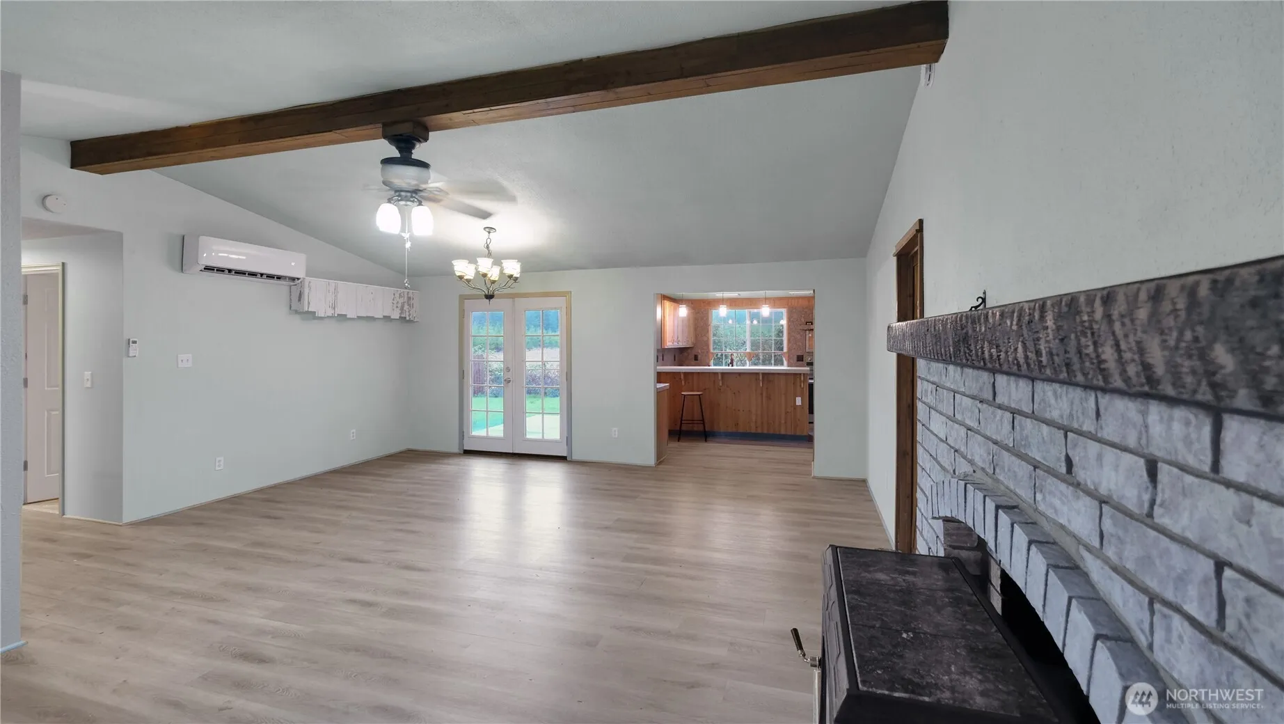 BIG PRICE CHANGE- Seller says MUST SELL! Job transfer forces the sale of this rambler on a large level lot in the heart of Forks. Great investment opportunity – Short or long term rental opportunity & great location for either. Country kitchen with knotty pine cabinetry & beautiful tile countertops, walk in pantry & coffee bar too. Warm up by the big beautiful wood burning stove with hearth or use the mini split; heat & A/C. The primary bedroom has direct access to the updated bathroom. Bonus space with 1/2 bath and laundry too. Updated flooring in main living area for easy cleanup. Fenced back yard for the critters Big shed and greenhouse, attached shed for additional storage, woodshed, lawnmower. BRING AN OFFER!