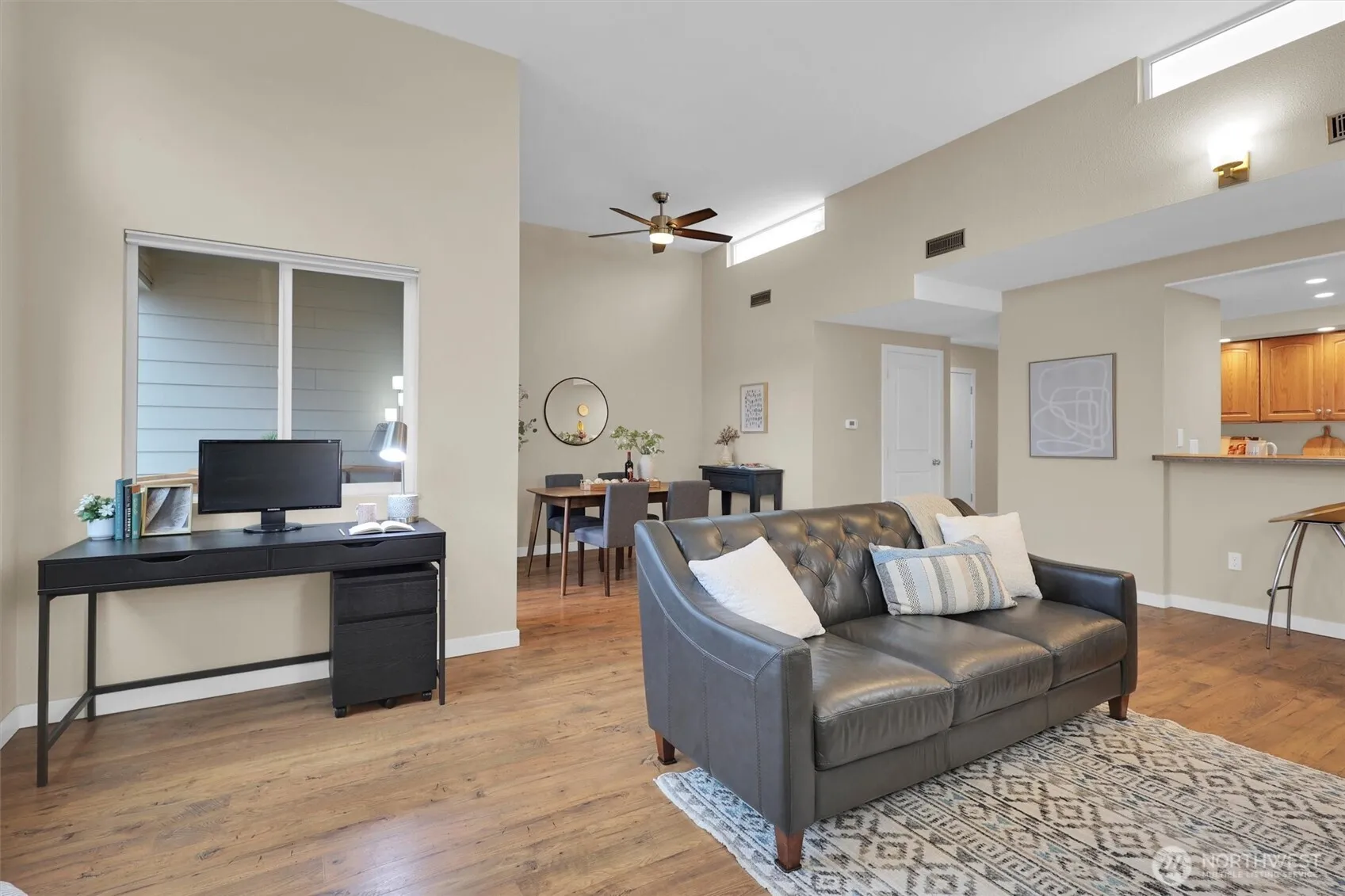 Sweeping views of Cascades from this east-facing premier top floor 2 bed/2 bath gem in coveted Knollwood, just blocks to Marymoor & downtown Redmond! Open floor plan with 12’ ceilings & modern design. Updated Kitchen, floor, paint, doors, trim, list goes on. Open the slider to double your dining space! Carport, storage, lots & lots of guest parking, Seasonal pool & spa, no rental cap, pets ok, Lake Washington schools! Close to Microsoft, Google & META.