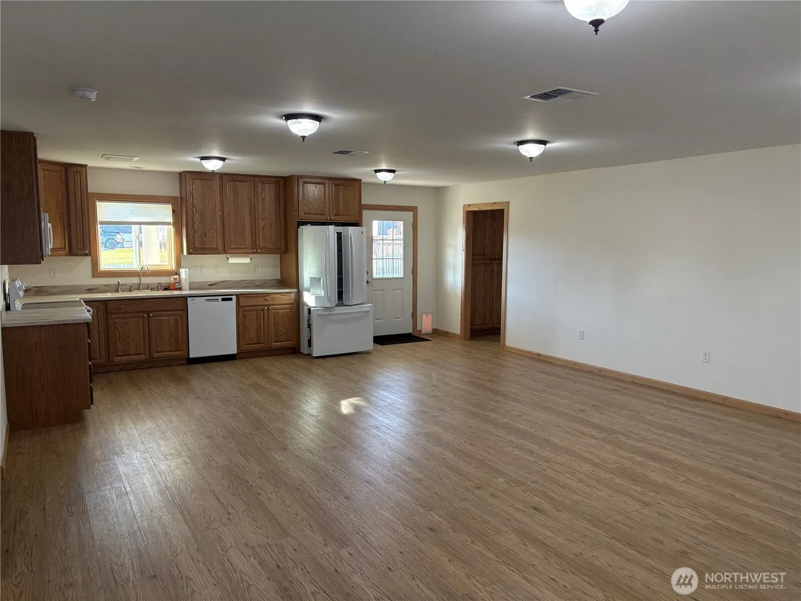 Beautifully Maintained Zero Entry Home on Nearly an Acre. Welcome to this lovely home offering comfort, convenience, and room to spread out. Step inside to an inviting open-concept floor plan with seamless flow throughout. The spacious primary suite features walk-in closet, zero-entry shower, wide doorways, creating an easy, barrier-free experience. On the opposite side of the home, you’ll find two additional bedrooms and full bathroom. Attached finished 720 sq ft garage provides year round practicality. Outside, you’ll love the expansive property-almost a full acre- complete with a large 1296 square foot garage perfect for hobbies, storage, and parking. Fenced garden area & non-interruptible irrigation. South side of yard is not fenced.
