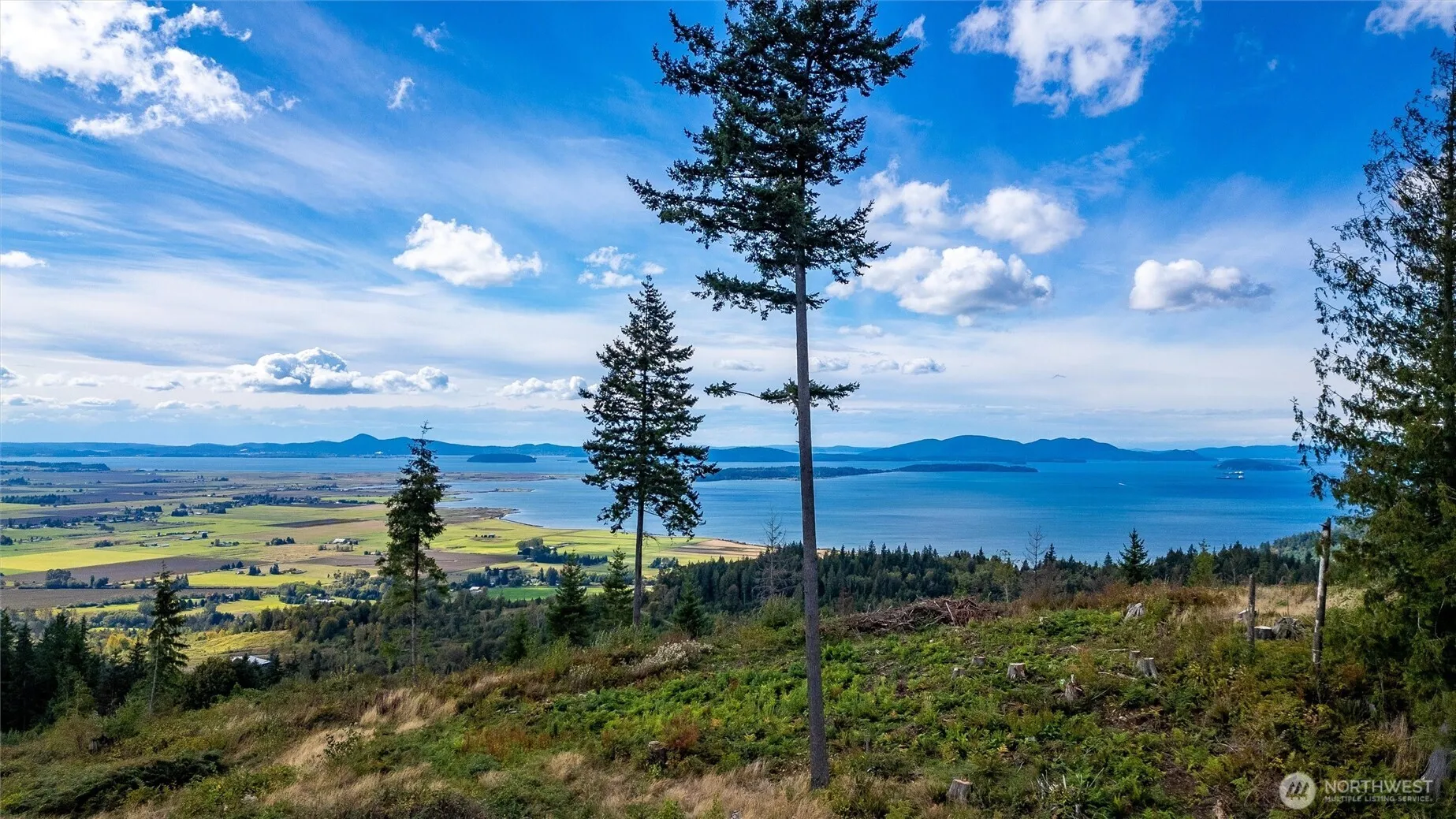 Discover the upper plat at Chuckanut Scenic Estates, an extraordinary vantage point where the landscape opens in every direction. From these elevated parcels, your eyes sweep effortlessly across the Skagit flats, following the farmland all the way to the shimmering bay beyond. The panorama continues outward to include the iconic silhouettes of the San Juan Islands, the snow-capped Olympic Mountains, and on clear days, Mt Rainier. Within this private, gated community, seven remaining 1-acre parcels with paved access roads, on-site power and water, cable, and strong cell service. Soil tests have been completed, and water right hook-ups under 1K. Despite the peaceful setting, you’re only minutes from I-5 and surrounded by open space and trails