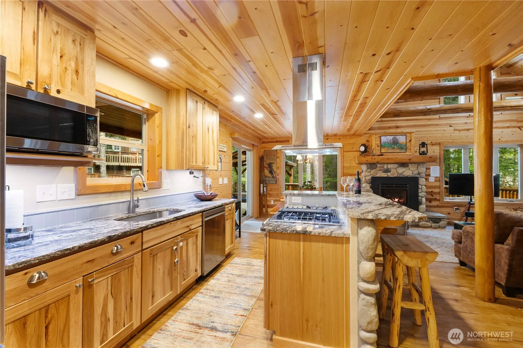 Beautifully crafted Crystal Village retreat with custom details throughout. Vaulted ceilings, skylights, river rock gas fireplace & polished wood interior create a warm, inviting space. Kitchen features hickory cabinets, granite counters & SS appliances. Main floor en suite bedroom, 2 upper level bedrooms , full bath plus loft. Enjoy the 432 SF deck w/ hot tub & gazebo. Relax around a crackling campfire after a day in the mountains. Generator wired w/ 85 KW generator included. Attached single car garage, low maintenance notched pine siding, covered entry. Trails, Crystal Mtn Resort & Mt Rainier National Park are just outside your door.