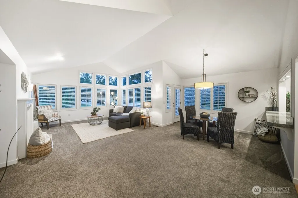 Pristine main-level condo living in the heart of Port Ludlow—where effortless accessibility meets breathtaking beauty. Step through the welcoming no-step entry into a light-drenched great room with soaring vaulted cathedral ceilings that create an instant sense of openness and grandeur. Expansive windows showcase panoramic views of the lush golf course and serene pond below, while upper-level balconies capture glowing sunsets with added privacy and security. This home has been completely renewed for modern comfort: fresh interior/exterior paint, plush new carpeting, brand-new stainless steel appliances, energy-efficient hybrid hot water heater, Carrier heat pump system, elegant plantation shutters, and a brand-new roof. The rare attached garage adds great convenience in this resort-style community. Take a video tour of this stunning condo to experience the light-filled spaces, golf course views, and all the updates firsthand: View Video Tour attached to listing. On cool evenings, curl up by the crackling fireplace and enjoy instant coziness. The quiet elegance and thoughtful design make every day feel luxurious and serene. Just steps away are miles of scenic trails, the championship golf course, 300-slip marina, and the exclusive Bay Club. Whether you’re seeking a low-maintenance primary residence, weekend retreat, or lock-and-leave lifestyle, this move-in-ready condo is utterly irresistible. Don’t miss this rare opportunity to experience Port Ludlow living at its finest!