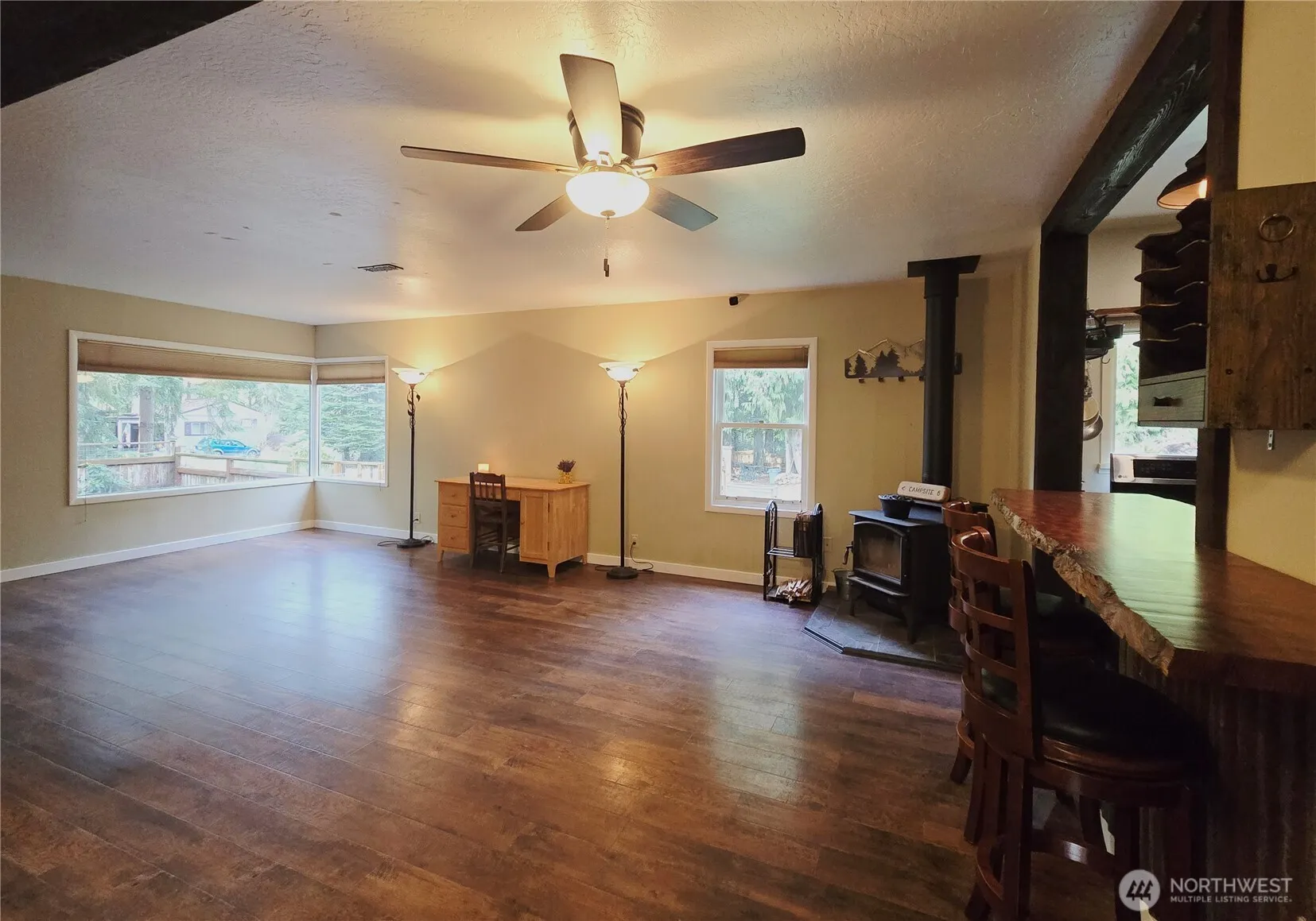 Charming home on almost a half acre. Fully fenced and conveniently located between Sequim & Port Angeles in the Deer Park area. Featuring a brand new roof w/30 year warranty & a new woodstove. Ductless heatpump provides efficient heat & A/C. Live edge wood & metal accents, main level bedroom and full bath. Private primary suite skylight and oversized half bath upstairs. Covered wood storage behind the house as well as 2 storage sheds providing ample space for tools, yard equipment and more. Fully enclosed chicken run and coop with easy, no-enter feeding system and egg collection. Level space for gardening and gathering around the firepit. Nestled between several Pacific Northwest copses, this home is a serene retreat for every day living.