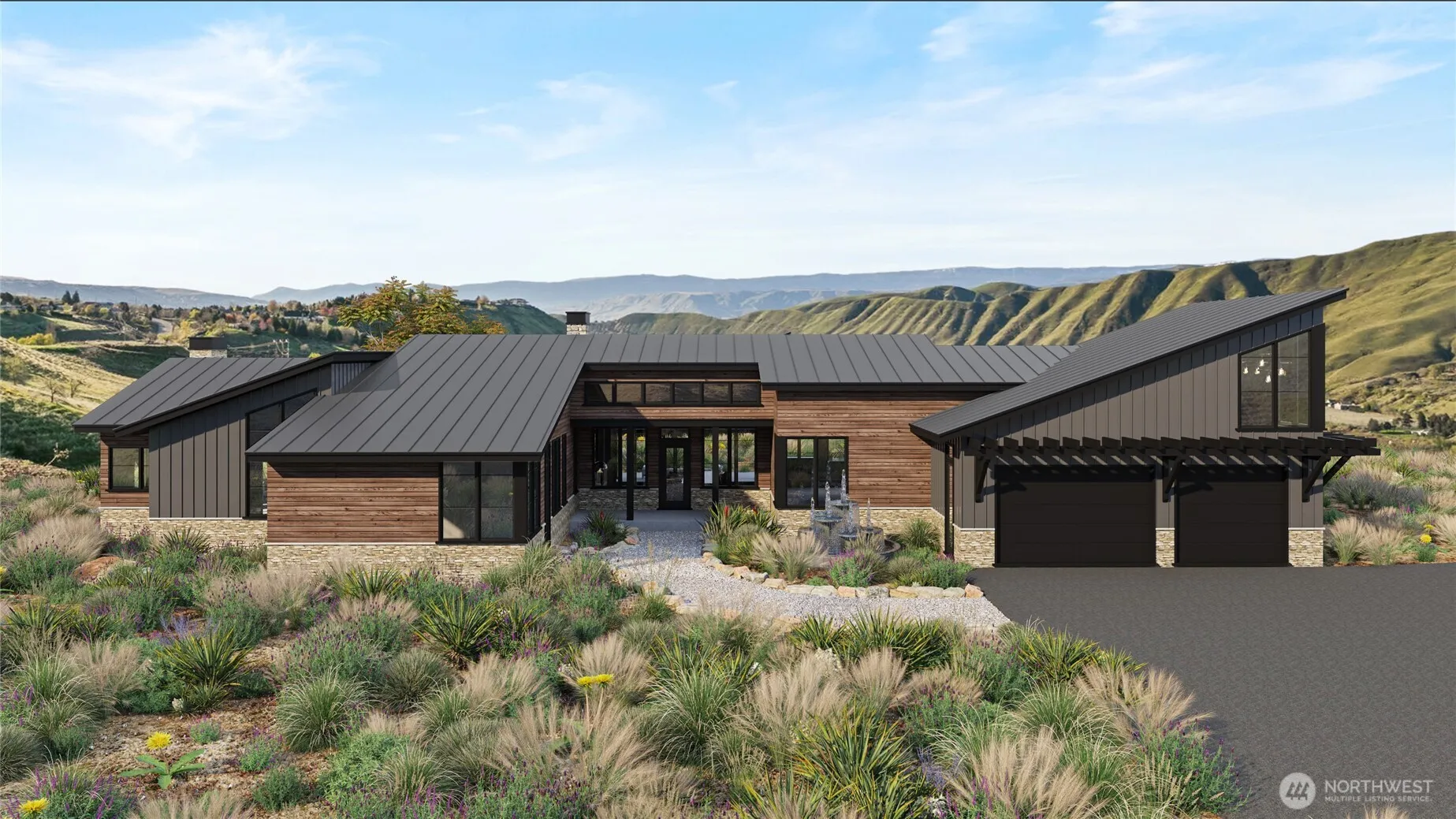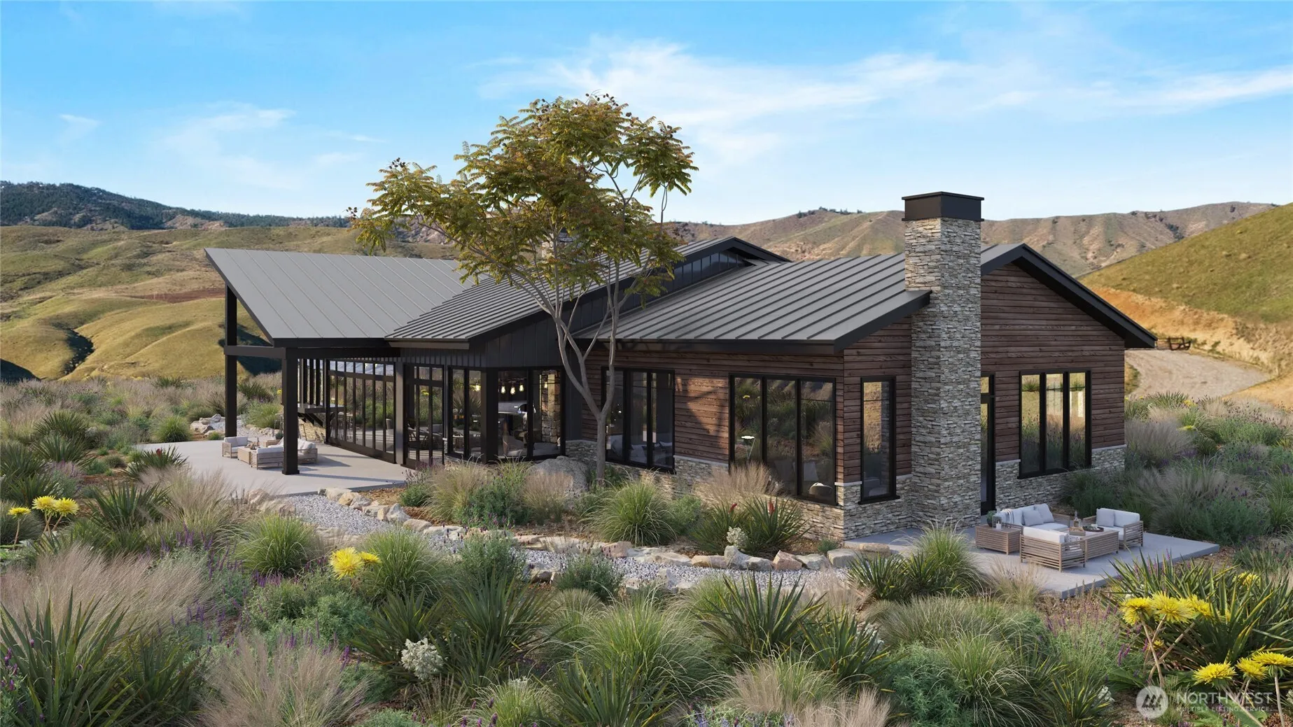 A rare and compelling opportunity to bring a fully realized vision to life on 10 private acres in Sunnyslope. Critical infrastructure is already in place, including a permitted septic system and a newly installed water pump purchased from PUD to establish an account and city water, positioning this property as truly build-ready this year. This exceptional homesite is paired with architecturally designed home and shop plans that embrace sweeping views of the Columbia River Valley and Wenatchee Foothills. The proposed residence reflects a modern Northwest aesthetic, with vaulted ceilings, expansive window lines, and a striking triple-sided fireplace anchoring the open-concept living space. The kitchen design is both functional and artful, featuring custom cabinetry, waterfall stone surfaces, and an intentional connection to the surrounding landscape. A private primary suite offers a retreat-like experience, complete with a spa-inspired bath and its own fireplace. Multiple outdoor living spaces and native landscaping plans are thoughtfully integrated to create seamless indoor-outdoor flow. A rare combination of privacy, preparation, and design excellence, offering a streamlined path from vision to completion.