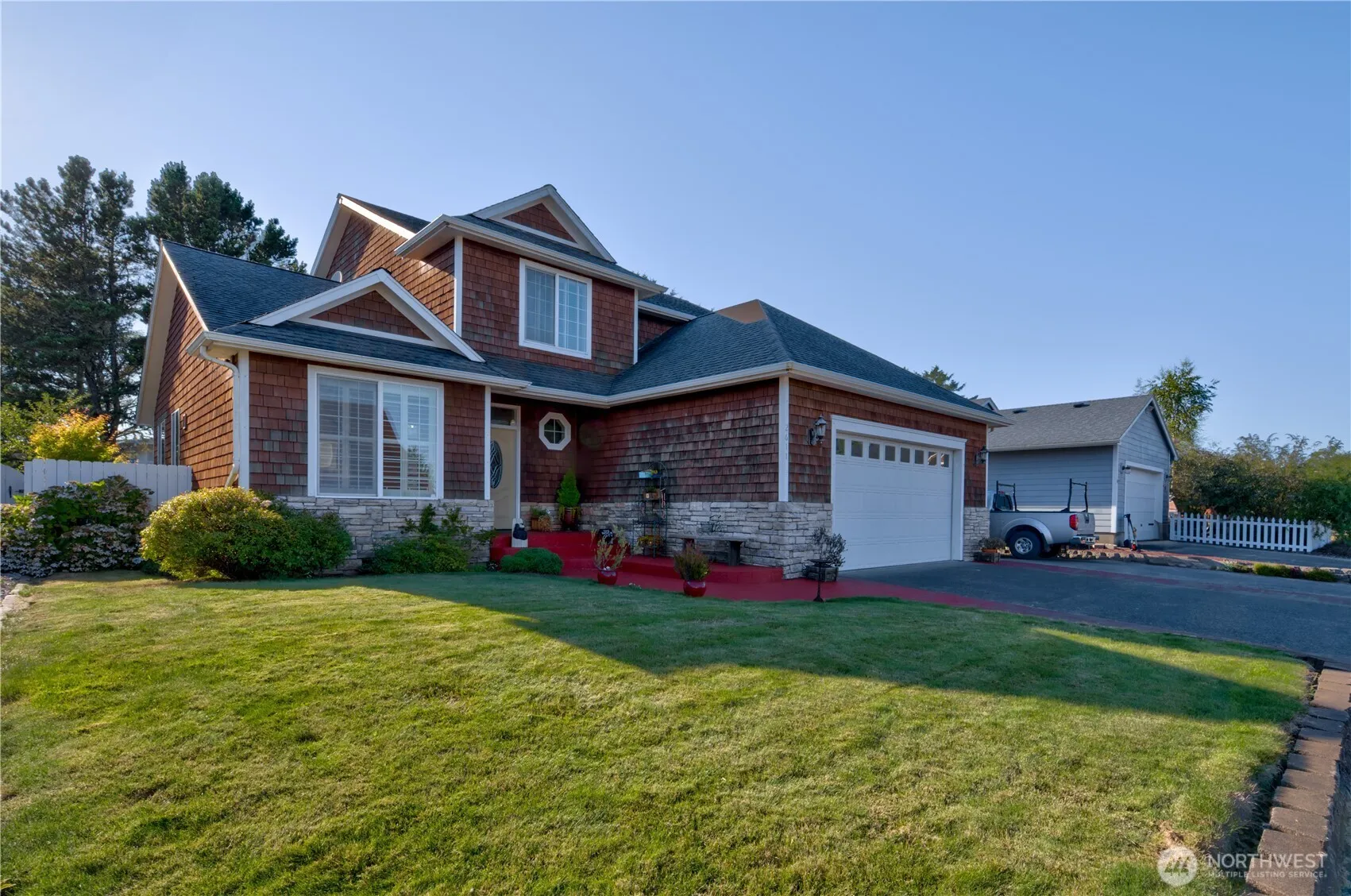 Beautiful Home in Long Beach ready for new owners! Lovely inside and out, and close to golfing, the beach, dining, and fishing. So many activities to choose from when you are enjoying the quiet elegance of this home. Hardwood floors and granite counters. Rock gas fireplace in the open living room, and primary bed and bath on main level. Upstairs features an open bonus area where you can take in all activities in the home, and work or play as you wish. 2 bedrooms and 2 baths up. Gorgeous entry area outside in front, and in back a deck that runs the complete expanse of the home. Steps to the yard below offers lovely plantings, and fruit trees, strawberries and raspberries. All fenced for your privacy. 2 car garage and RV parking.