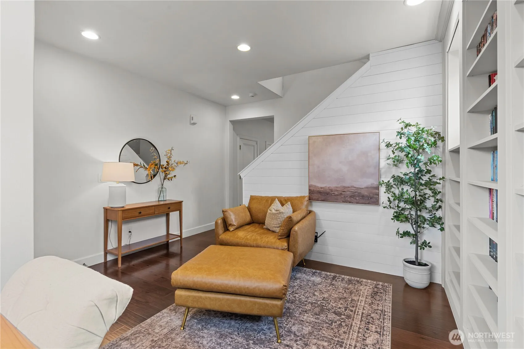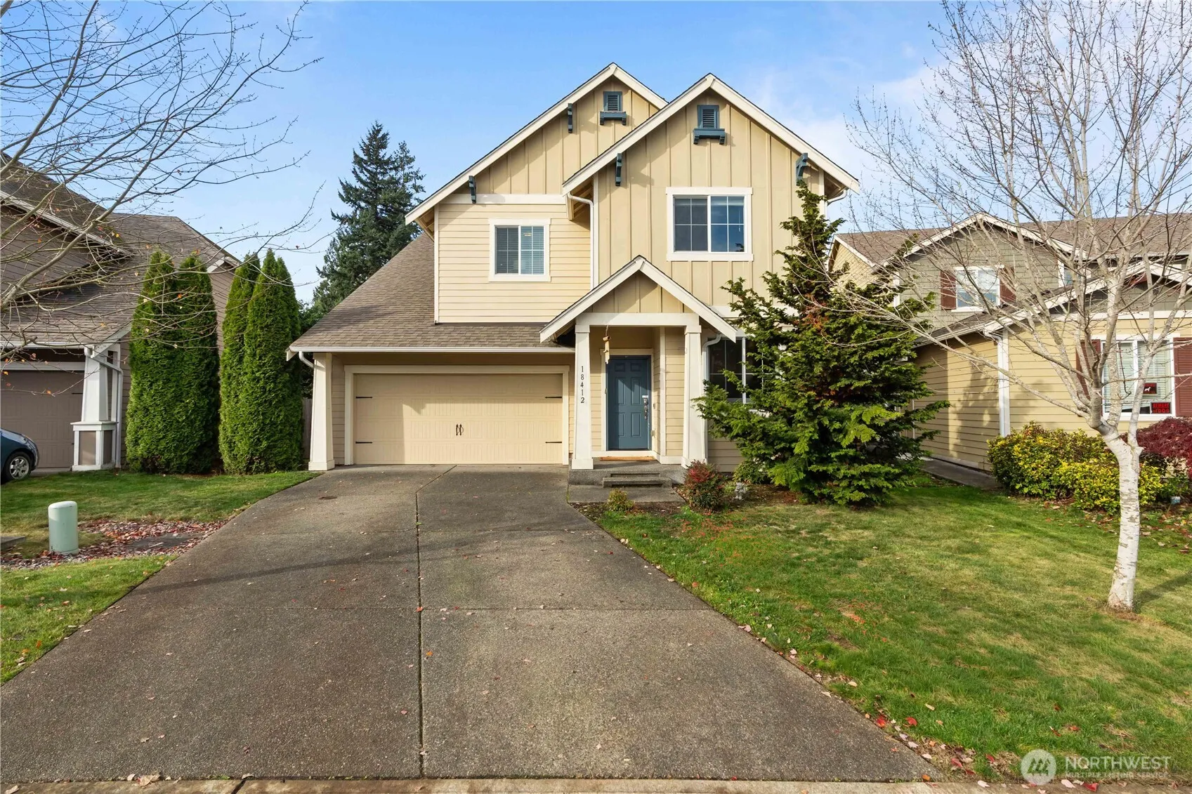 Welcome home to this spacious 4 bedroom property with an open concept kitchen and living room, stunning built-ins, cozy fireplace, & beautiful engineered hardwoods flooring. The main level offers a flexible bedroom that also works well as an office, with useful 3/4 bath just across the hall. Living/kitchen/dining space blends together perfectly for entertaining, useful center island, stainless appliances, & dual ovens. Upstairs you will find the primary suite, 2 additional bedrooms, and a generous loft space that adds valuable living space. This home is wired as a smart home for modern convenience and functionality. Charming neighborhood includes a playground, basketball court, and only minutes from shopping, restaurants, and JBLM access.