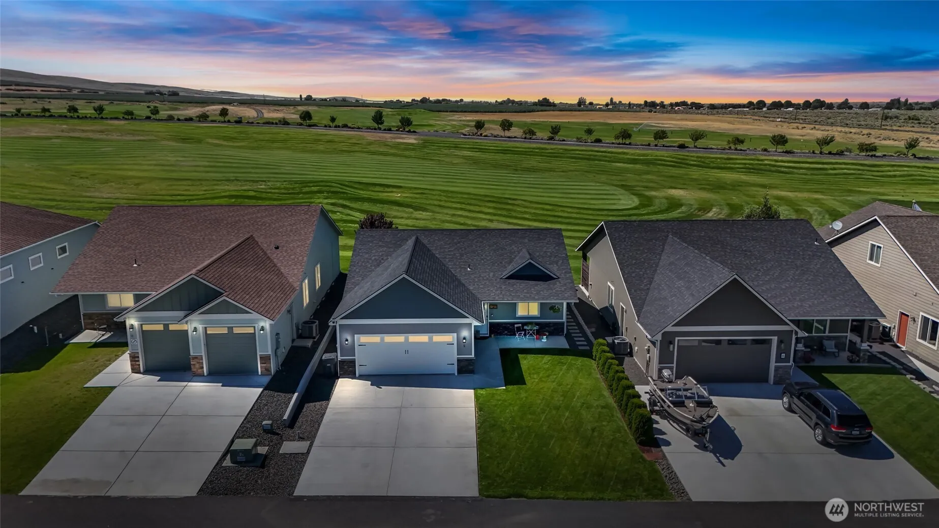Step right out your back door onto the golf course! This beautiful home features upgraded cabinets with quartz counters throughout, a stunning tiled walk-in shower in the primary en suite, and durable Hardiplank siding with stacked stone accents. Relax on the charming front porch or enjoy endless views from the spacious back patio. The 26’ deep garage provides plenty of room. Located in The Legacy Resort at Frenchman Hills, a peaceful gated golf course community, you’ll love the serene lifestyle just 20 minutes from Moses Lake and minutes from hunting, fishing, ORV’ing, endless outdoor activities. Unwind with breathtaking sunsets and your favorite beverage—don’t miss this incredible home! Seller including 1 year of golf for 2!