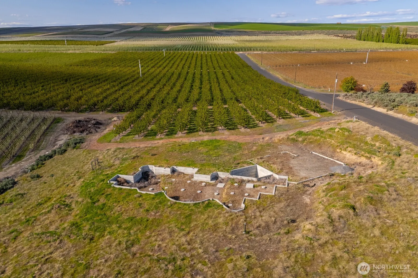 Discover 2.5 acres of serene countryside surrounded by picturesque farmland, orchards, and vineyards with sweeping hillside views. This peaceful setting offers the perfect canvas for your dream home. A foundation is already in place—view the concept in the supplements or design your own custom retreat. With a newer well installed and power available at the street, you’re one step closer to turning your vision into reality. Don’t miss this incredible opportunity to own a slice of country paradise!