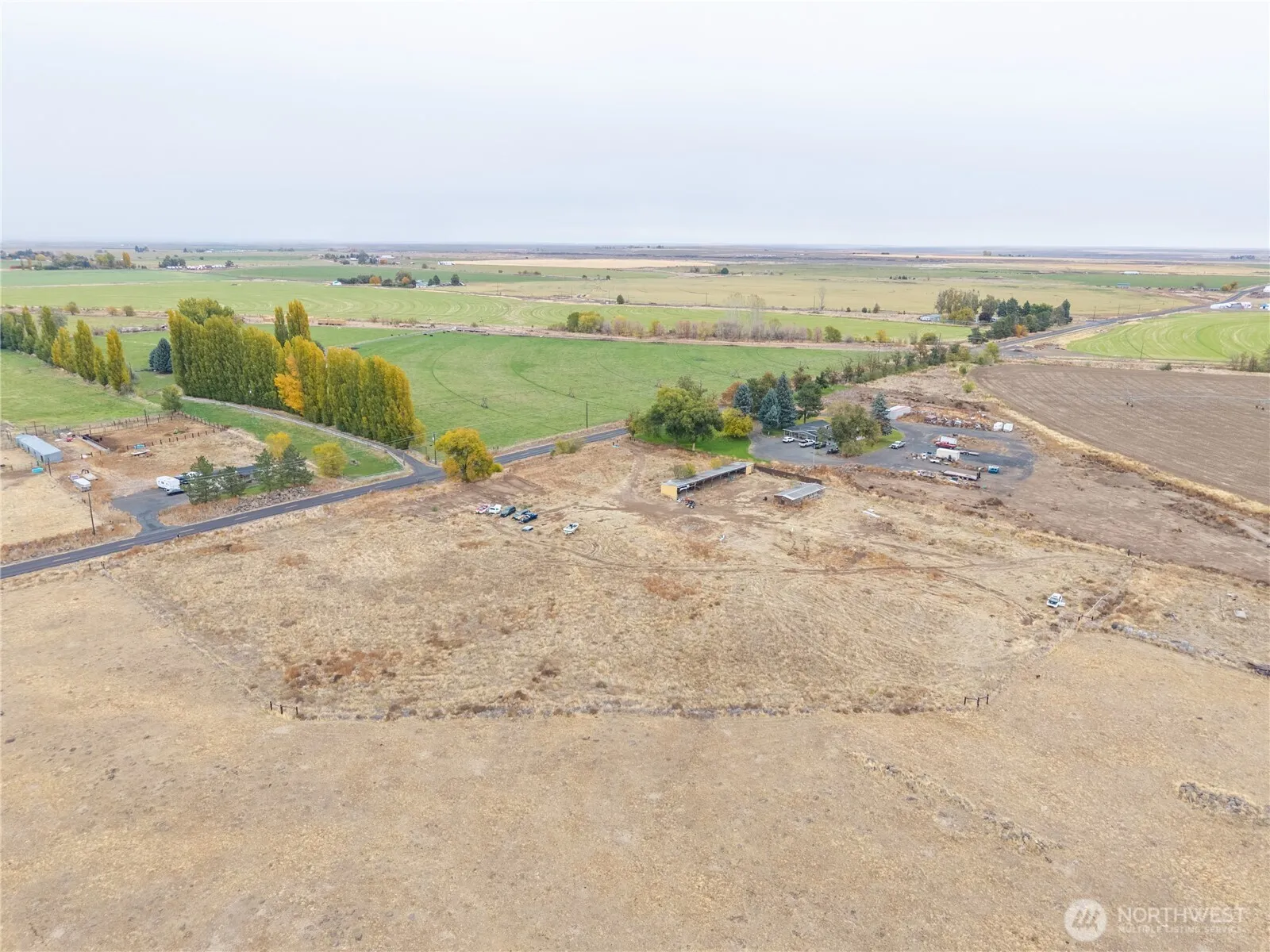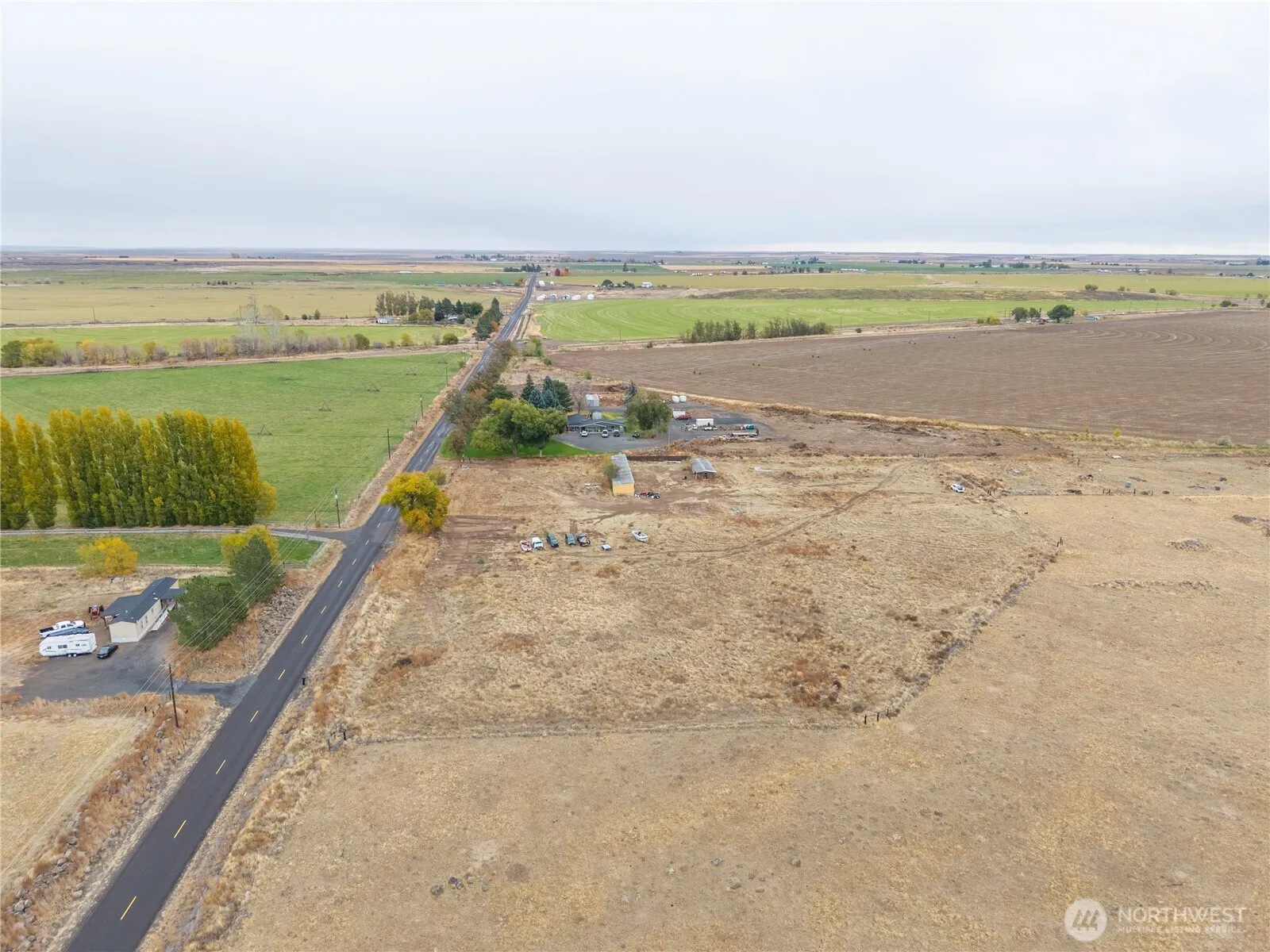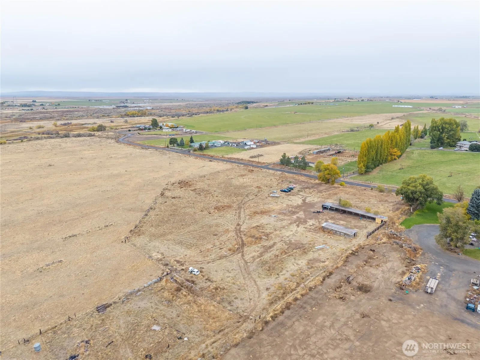 Unique and rare 5 acres north of town that sits perched up offering a rare territorial view of Moses Lake (located across the road from Block 40 Meats. Property is mostly fenced. 100′ Well drilled in 2016 (will need power and a pump). Existing outbuildings. No covenants. Buyer to verify with county zoning and permitted uses.