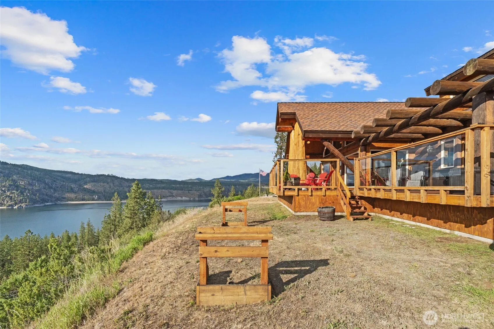Discover this stunning 4,500 sq. ft. custom log home set on 40 private acres overlooking the Spokane River, just east of Lake Roosevelt. This meticulously crafted retreat has breathtaking panoramic views, luxurious finishes & unparalleled tranquility. The gourmet kitchen is a chef’s dream, w/granite countertops, dual ovens, gas cooktop, & a high end refrigerator. Perfect for entertaining, the spacious dining room w/vaulted ceilings & the bar room both open thru French doors to a deck-ideal for enjoying serene river & countryside vistas. Primary suite has a large walk-in closet & a spa-like bathroom w/tiled shower & classic clawfoot tub. Enjoy direct access to 640 acres of adjacent DNR land, 1310 line frontage & the Ft. Spokane boat launch.