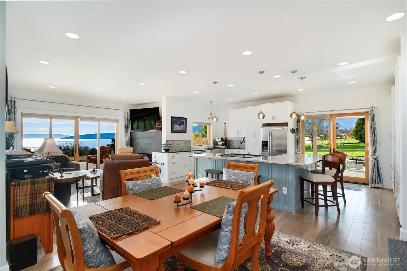 A tranquil, sun-filled setting in a highly sought-after location, this private 3.2-acre property captures the wild beauty of the San Juan Islands with sweeping views of the Strait of Georgia. Thoughtfully designed for multi-generational living and aging in place, the main home offers comfortable living with a peaceful primary suite on the main level, seamless indoor–outdoor flow, and a spacious garage for storage, projects, or gear. Upstairs, a flexible second living space with bedroom, bath, living area, and multi-use kitchen—complete with separate exterior entry—creates an ideal private apartment or caregiver suite, while also offering income potential.The beautifully maintained cottage adds exceptional versatility and investment value, featuring reclaimed barn beams, window seat, soaking tub, cozy fireplace, Pella windows, French door, JennAir range, Bosch dishwasher, attached laundry, shop, and patio.The land invites rest and relaxation—sun-drenched and well-suited for gardens, small-scale farming, or orchards, with space to grow and gather. Multiple outbuildings support a range of uses. With the ability to generate income from both the cottage and upper-level suite, this property offers a rare blend of lifestyle, flexibility, and long-term value.